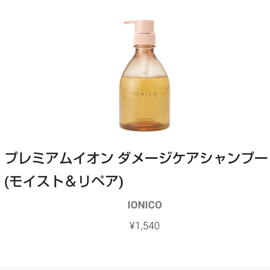 IONICO プレミアムイオン ダメージケアシャンプー (モイスト&リペア) | 1,540円 |