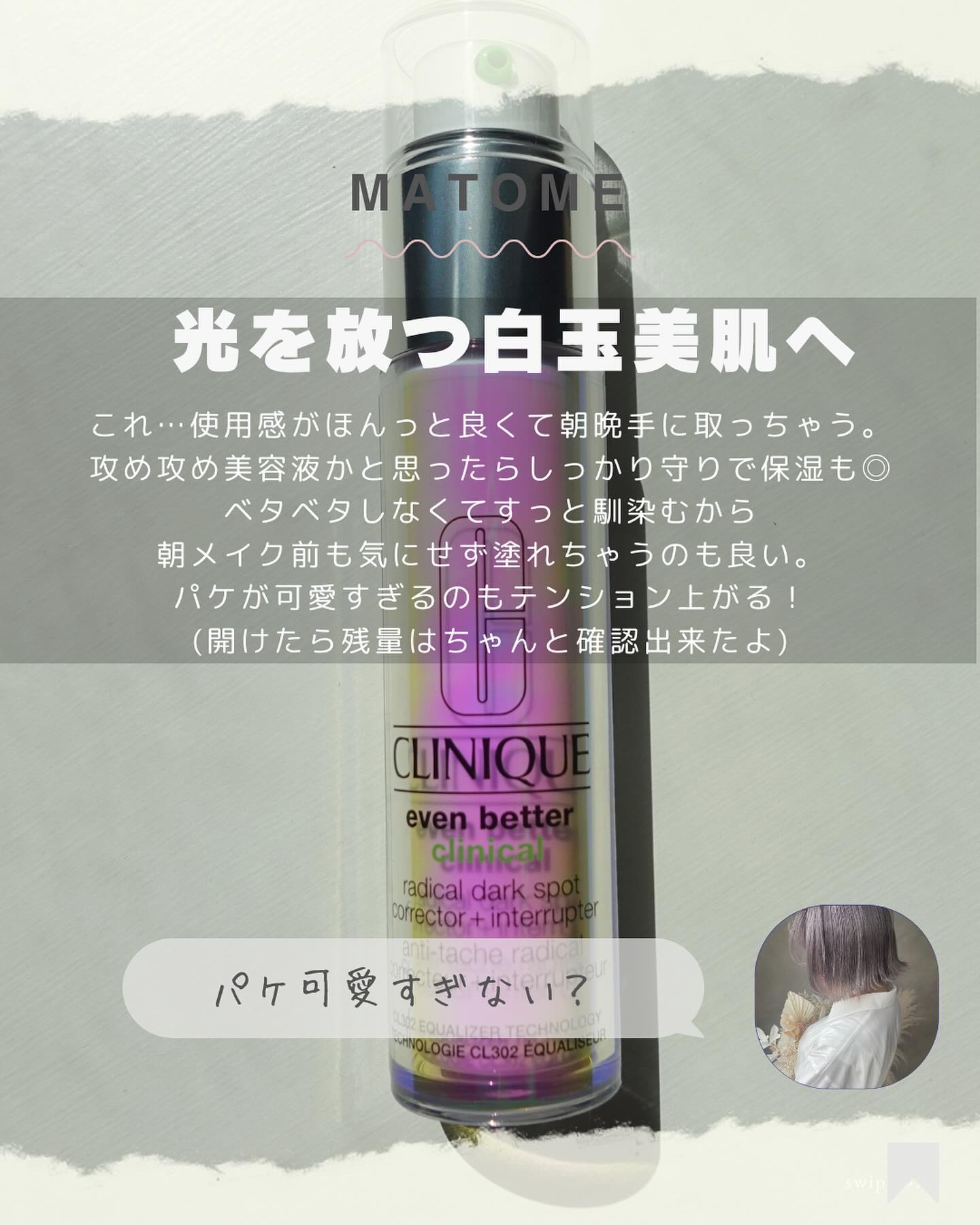 クリニークがすっごいブライトニング美容液出してきた‼️ 肌本来の透明感を引き出しながら、白玉のようにつるんとなめらかで、明るくキメの整った均一で美しい肌へ導く美容液🤍 乾燥くすみにアプローチするクリニーク独自のブライトニング成分 'UP302'はそのままに… メラニン生成を抑制する'2種のビタミンC'とメラニンの移送を遅らせる'ナイアシンアミド'を新たに配合✨ 肌なじみがよく、角質層までより浸透しやすくなりすっと指をやさしく滑らせるだけで肌がしっとりと感じる🤤