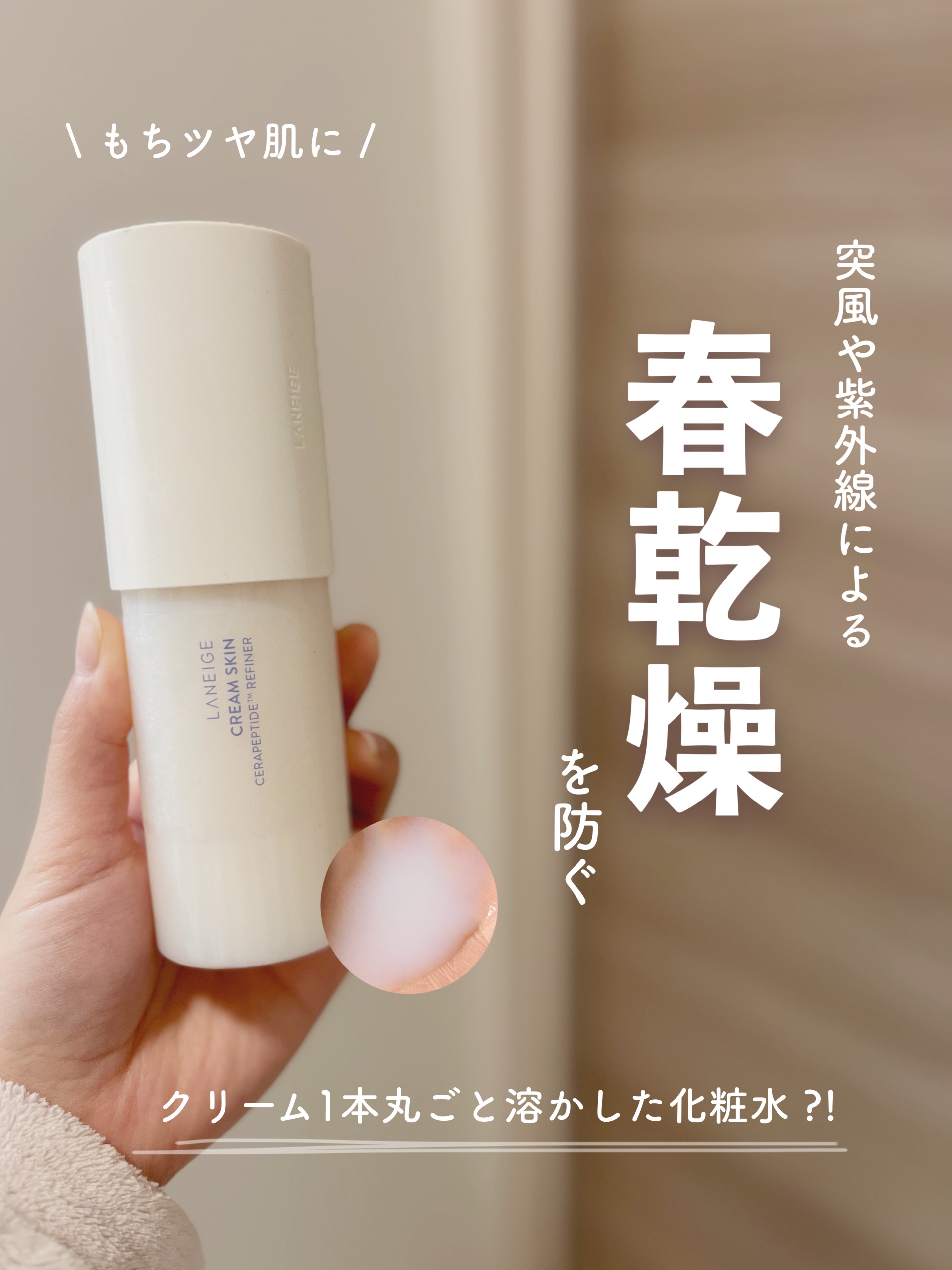 セラペプチドを配合したクリームを化粧水に丸ごと1本溶かし込んだ化粧水なのでハリのあるツヤ肌に導きます 少しトロミのある化粧水で無香料 保湿とうるおいバリアをサポートしてくれます ベタつかずサラサラなのも嬉しいところ 乾燥が酷くなる秋冬には必須アイテムになりそうです