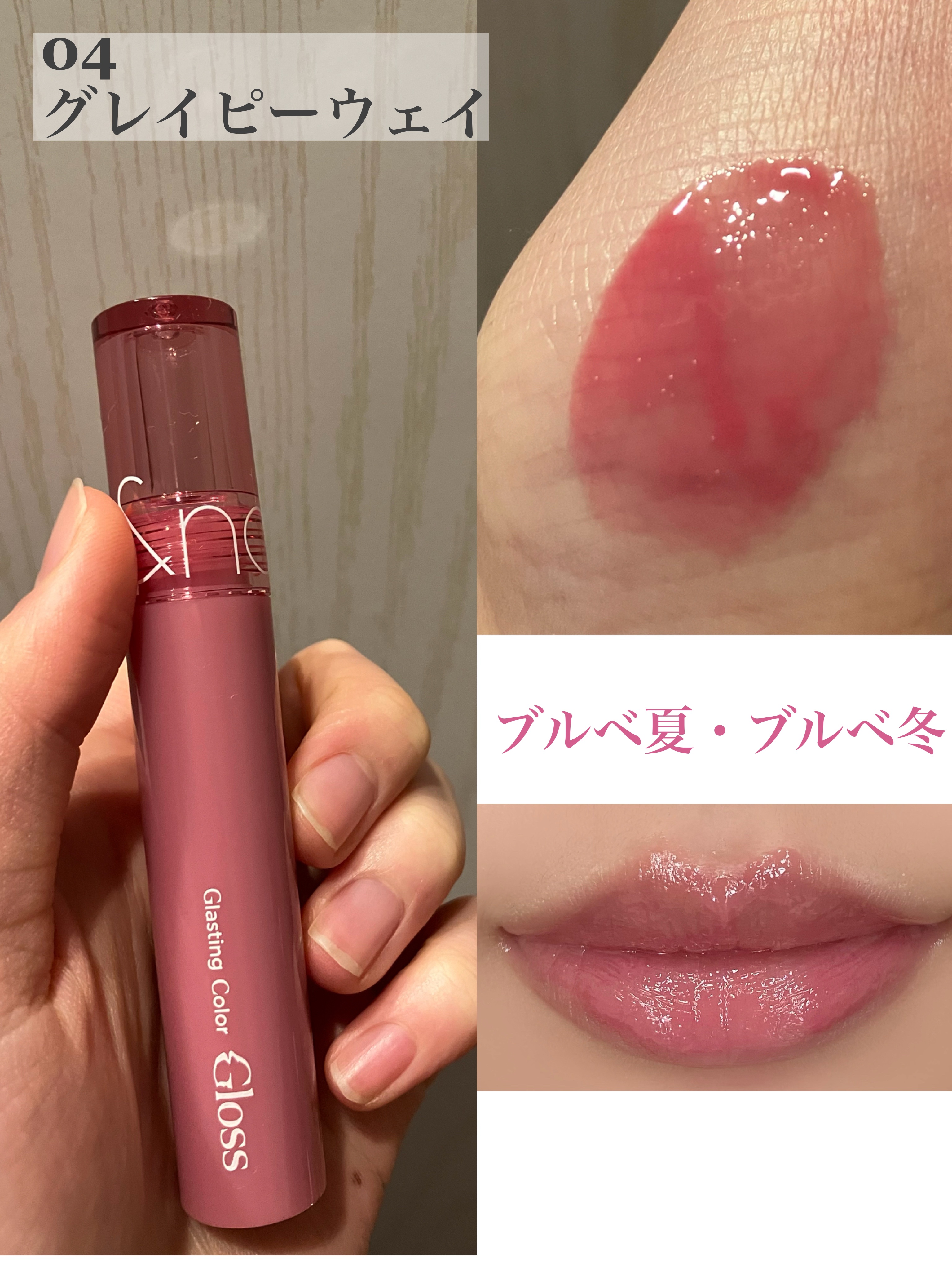 私的にこのリップの1番の推しポイントは カッサカサの唇に塗っても しっかり馴染んでくれて うるうるツヤツヤなnot縦じわな唇 にしてくれるところかな〜💕 わたしが特に気に入ったのは 01と04! 01はどんなリップに塗っても可愛くなるし 組み合わせがしやすい! 04は結構紫?みたいな感じで心配だったけど 塗ってみるとめっちゃ可愛い青みピンクだった♥️