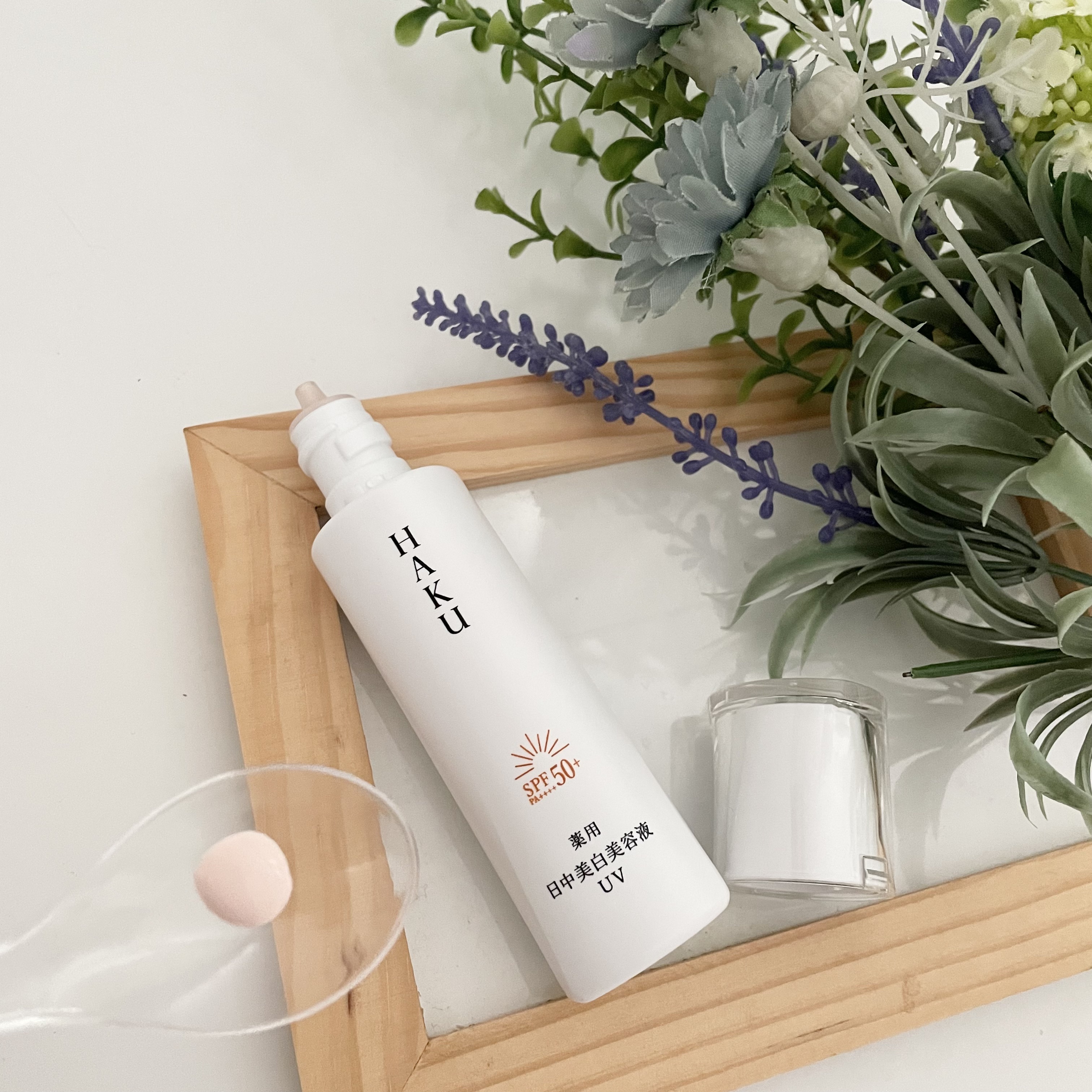 - 販売名「メラノフォーカスUV」 SPF50+・PA++++ 日中のHAKU。光を浴びる時間も味方に、日中だからできる美白ケアのアプローチ。 シミ予防研究の先端技術を搭載し、日中ならではの美白ケアを可能にした、薬用日中美白美容液です。光を浴びる時間も味方にして、明るく透明感のある肌に導きます。 ○2種の美白有効成分を肌の奥まで届け効かせる。 ○日中の肌環境に着目し、Wデイエフェクターを配合。うるおいを与え届ける。 〇ファインレッドパールαが効果的に光を放ち、シミや色ムラを目立たせない。トーンアップ効果で、明るく透明感のある仕上がり。 〇みずみずしい美容液がスーッとなじむ。化粧下地としても使える。 ○無香料・アレルギーテスト済み・ニキビのもとになりにくい処方。 (全てのかたにアレルギーが起きない、ニキビができないというわけではありません)。