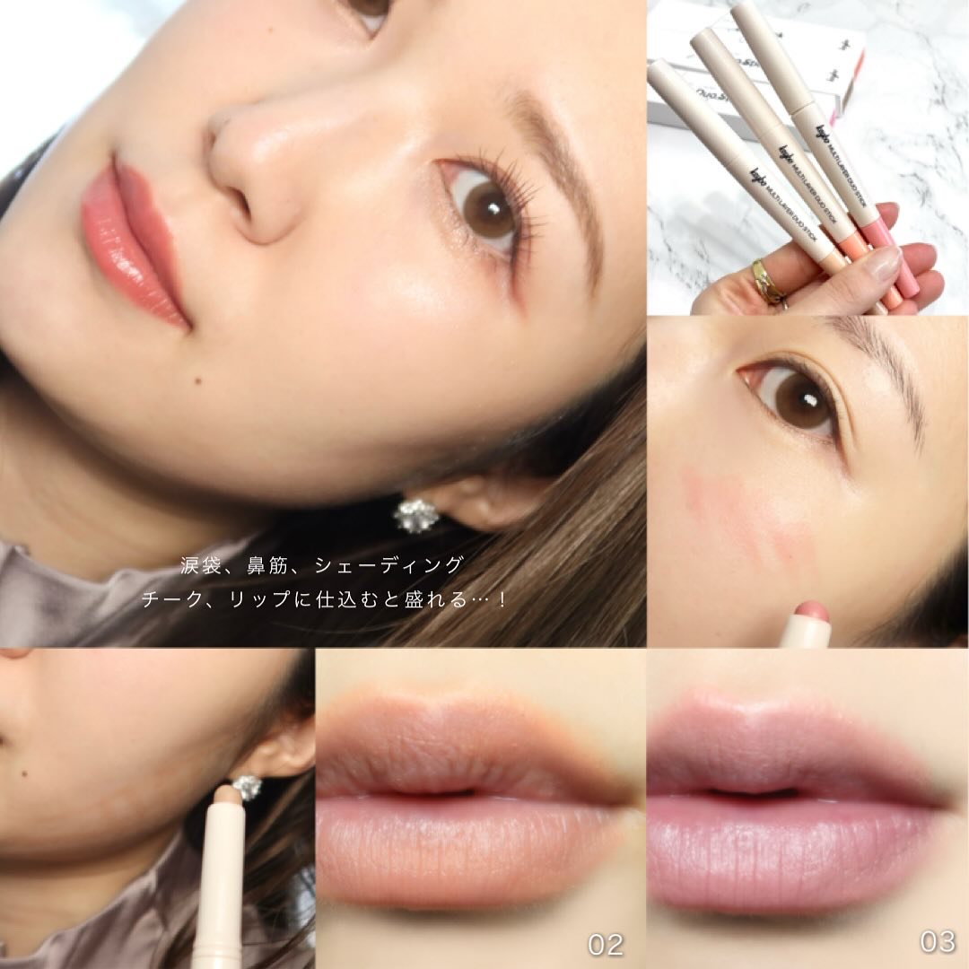 唇にしっかり定着してくれて、ほんと落ちにくい!!😳👏 食事をしても唇に血色感が残るので デートにもおすすめ🥰 しかも全色絶妙にかわいいカラー、、🤤❤️🔥 ブルベ夏のわたしは特に03,04がお気に入り!