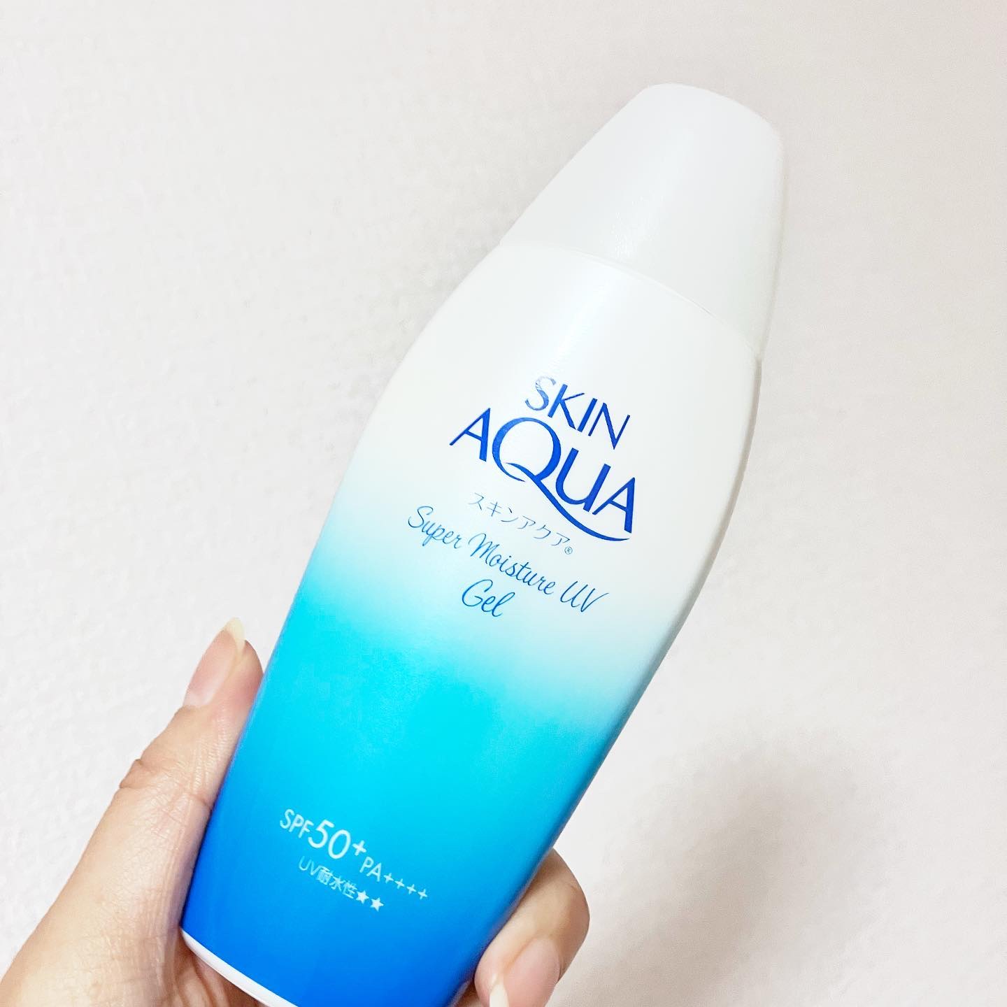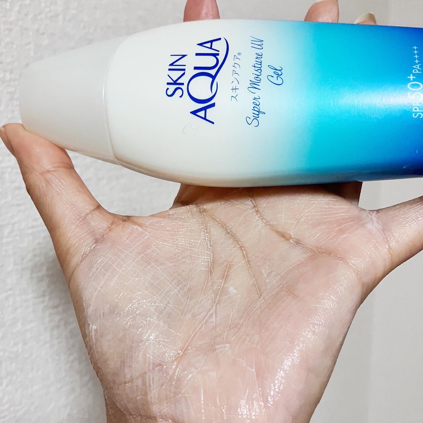 【スキンアクア】スーパーモイスチャージェルポンプタイプ購入しました。UV耐水性が書いてるので新しいバージョンかな?と思います。水のような軽いつけ心地で、ジェルタイプならではのうるおい感。顔にも身体にも使える万能UVで、SPF50+/PA+++...
