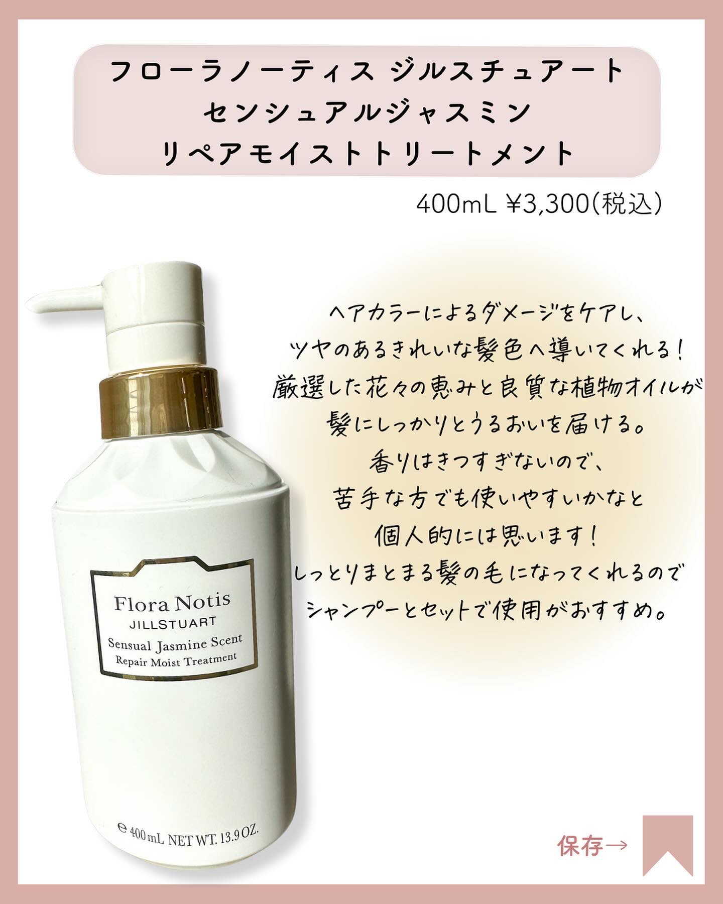 Flora Notis JILL STUART センシュアルジャスミン リペアモイストシャンプー / リペアモイストトリートメント | 3,300円 |
