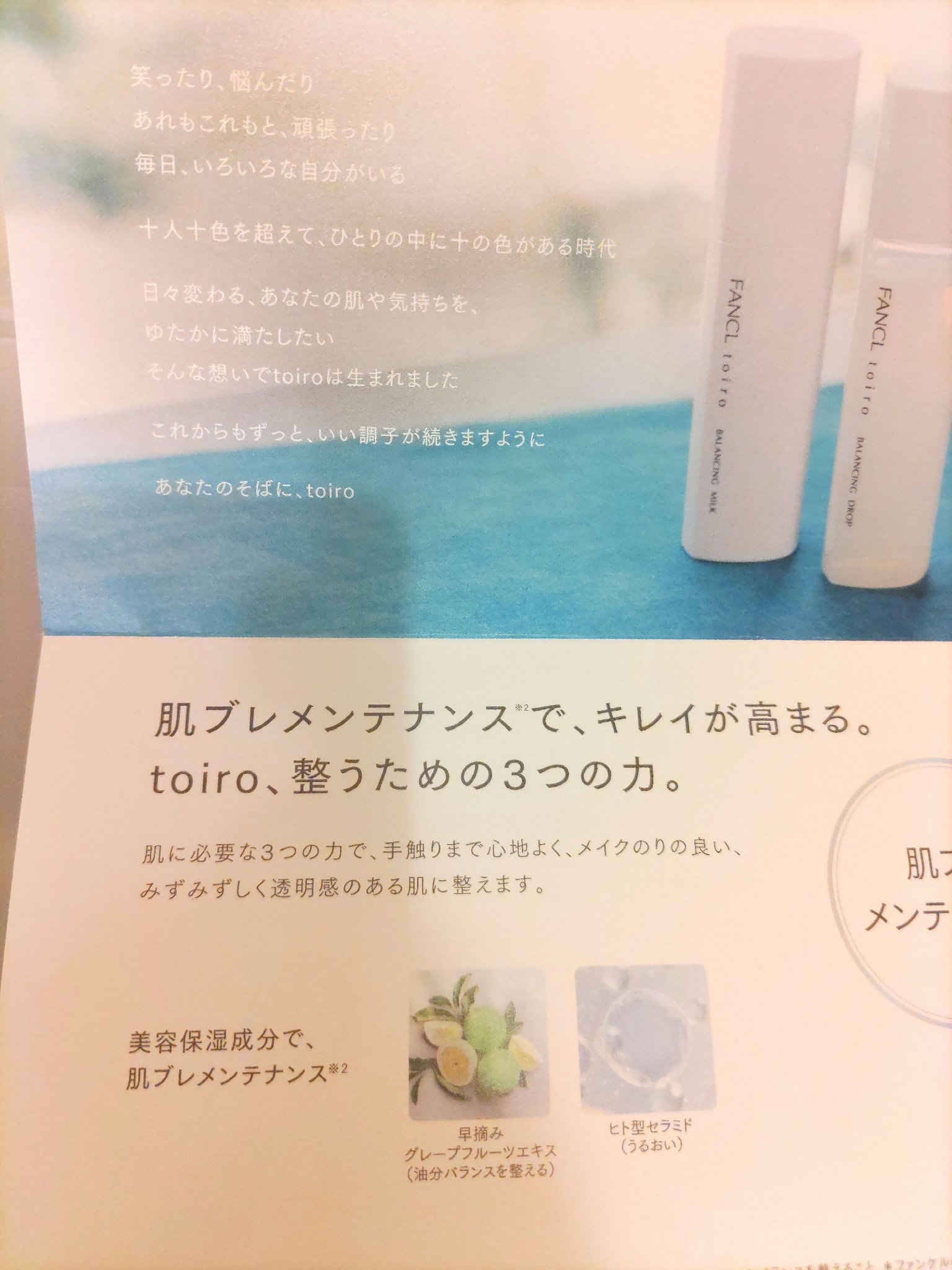 FANCL無添加トイロうるおい・美白・肌あれ予防2週間キットバランシングドロップ(化粧水)バランシングミルク(乳液)toiroの2週間キットを購入してみました!その中から化粧水と乳液をレビューします❣️🤍トイロバランシングドロップ(化粧水)🤍...