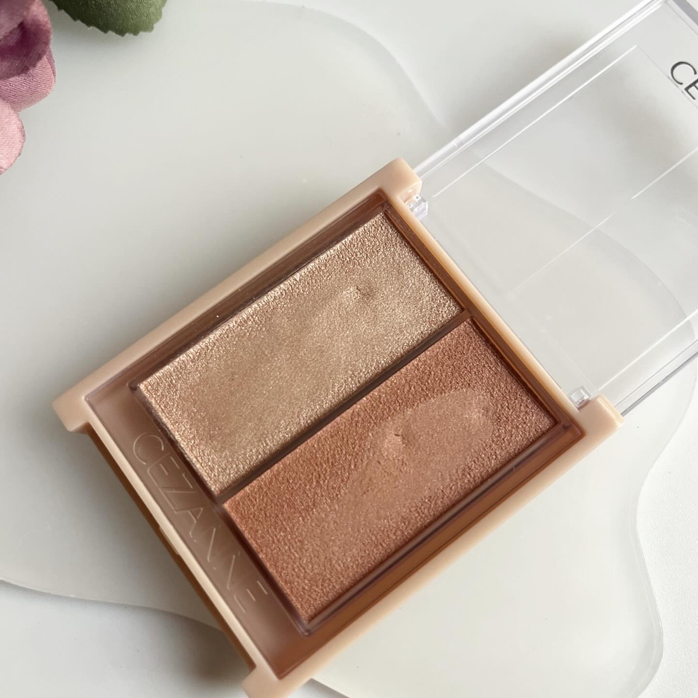 チークは大人女子でも使いやすいカラーだし粉質もすごい良い! ハイライトはぷにぷにしてる。 ラメが細かくてほんと綺麗。 右のピンクのハイライトはチークハイライトとして使うのかな?瞼にも使えると書いてあるけど。