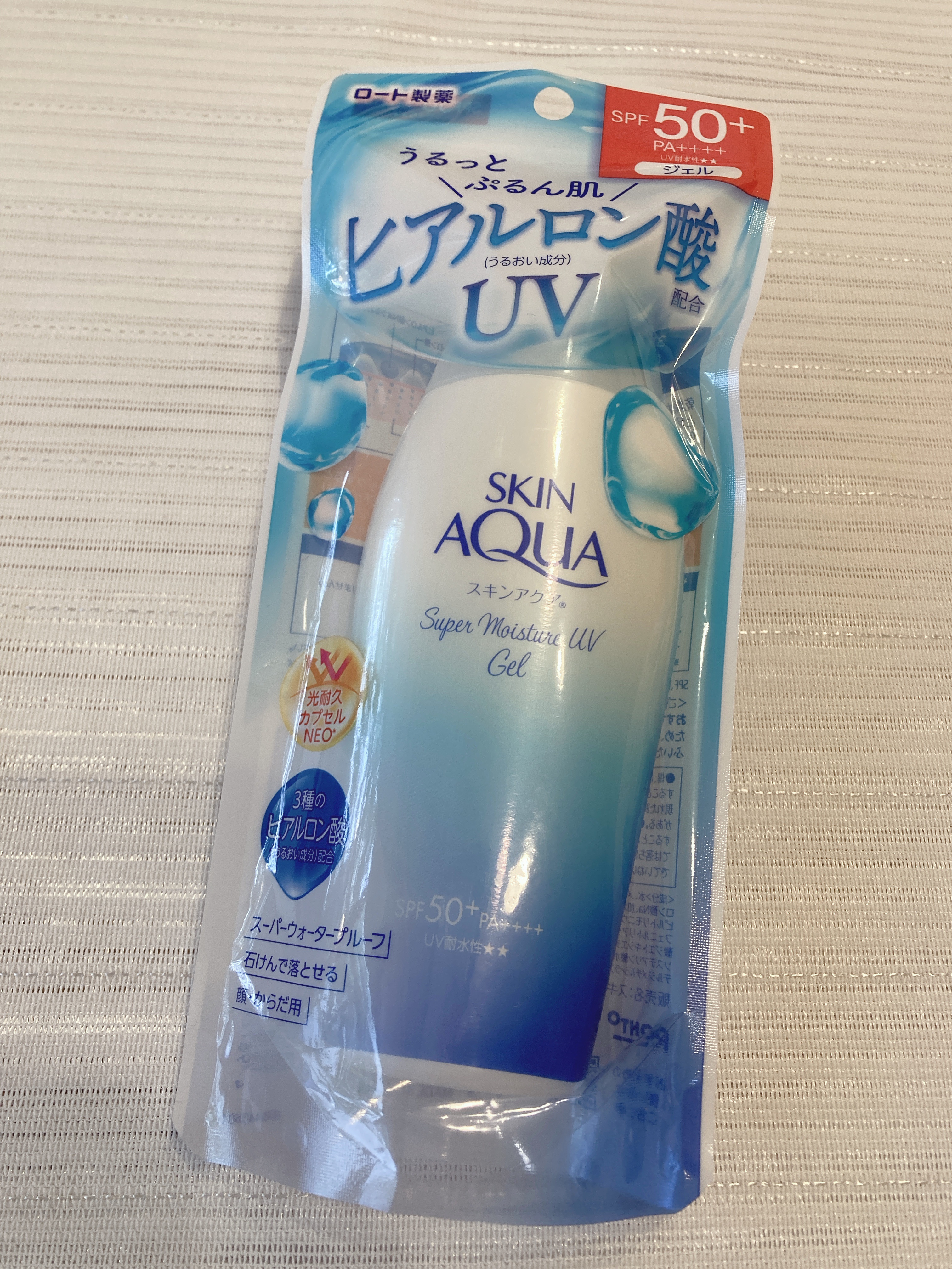- 塗るたび肌がうるおう日焼け止め。 厳選された3種のヒアルロン酸配合で乾燥から肌を保護します。 スーパーウォータープルーフ。 幅広い紫外線をブロックします。 全身にのばしやすいジェルタイプ。 SPF50+、PA++++、UV耐水性★★。 水のようなつけ心地。 4つのうるおい成分「スーパーヒアルロン酸、ヒアルロン酸Na、アミノ酸、コラーゲン」配合!やさしさへのこだわり。 「アレルギーテスト済み*1、無香料、無着色、鉱物油フリー」。 「スキンアクア スーパーモイスチャージェル」は、最高のUVカット効果*2をもつみずみずしいジェルタイプの日やけ止め。 光耐久技術採用!光によるUVカット機能の低下が起こりにくい独自成分配合。 石けんでするんと落とせます。顔・からだ用で、化粧下地にもオススメです。 たっぷり使えるボトルの110g、大容量ポンプの140gをご用意。 *1:すべての方にアレルギーが起こらないというわけではありません。 *2:スキンアクアシリーズ内。 紫外線防止成分:紫外線吸収剤