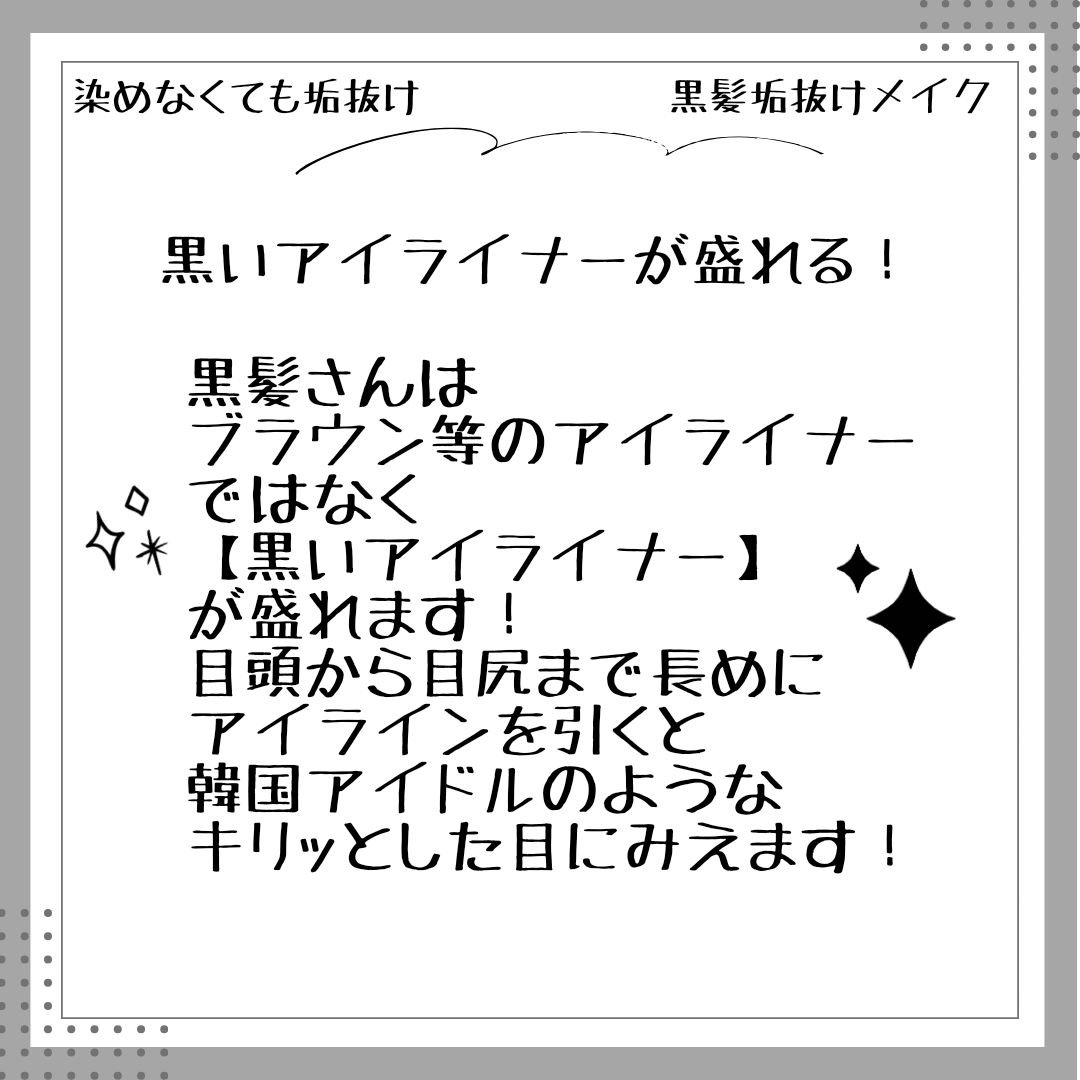 下地で肌を均一にして完璧に! 黒髪さんのメイクはほんっっとうにベースの作り込みが大事なんです!! ファンデーションにパープルの下地を少しだけ混ぜる 黒髪さんは肌の色を明るくしてブルベ寄りの肌にすると黒髪さんの垢抜けメイクに大切なパーツがよりハッキリして見えます! カバー出来てないところはコンシーラーを使う! クマ シミ くすみ 等は下地やファンデーションでカバーできないところがあります。