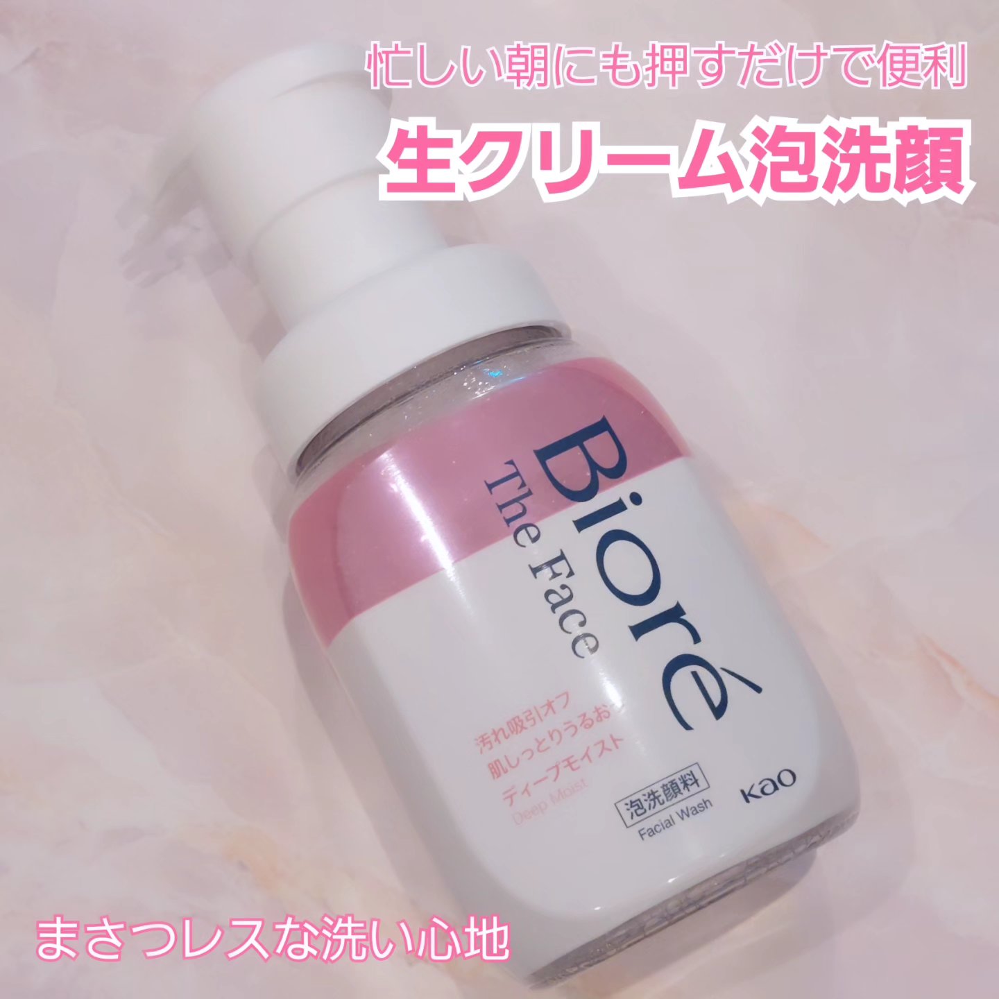 押すと、ホイップ泡で出てくる😍🧁ビオレTheフェイス泡洗顔料ディープモイスト🧁泡立てるのって、少し時間・手間がかかるよね🧼🫧これは泡立てなくて、そのまま使えて、便利🤩時短になるね!この泡がクリーミィーでなめらか☺️密着する生クリーム泡で、よご...