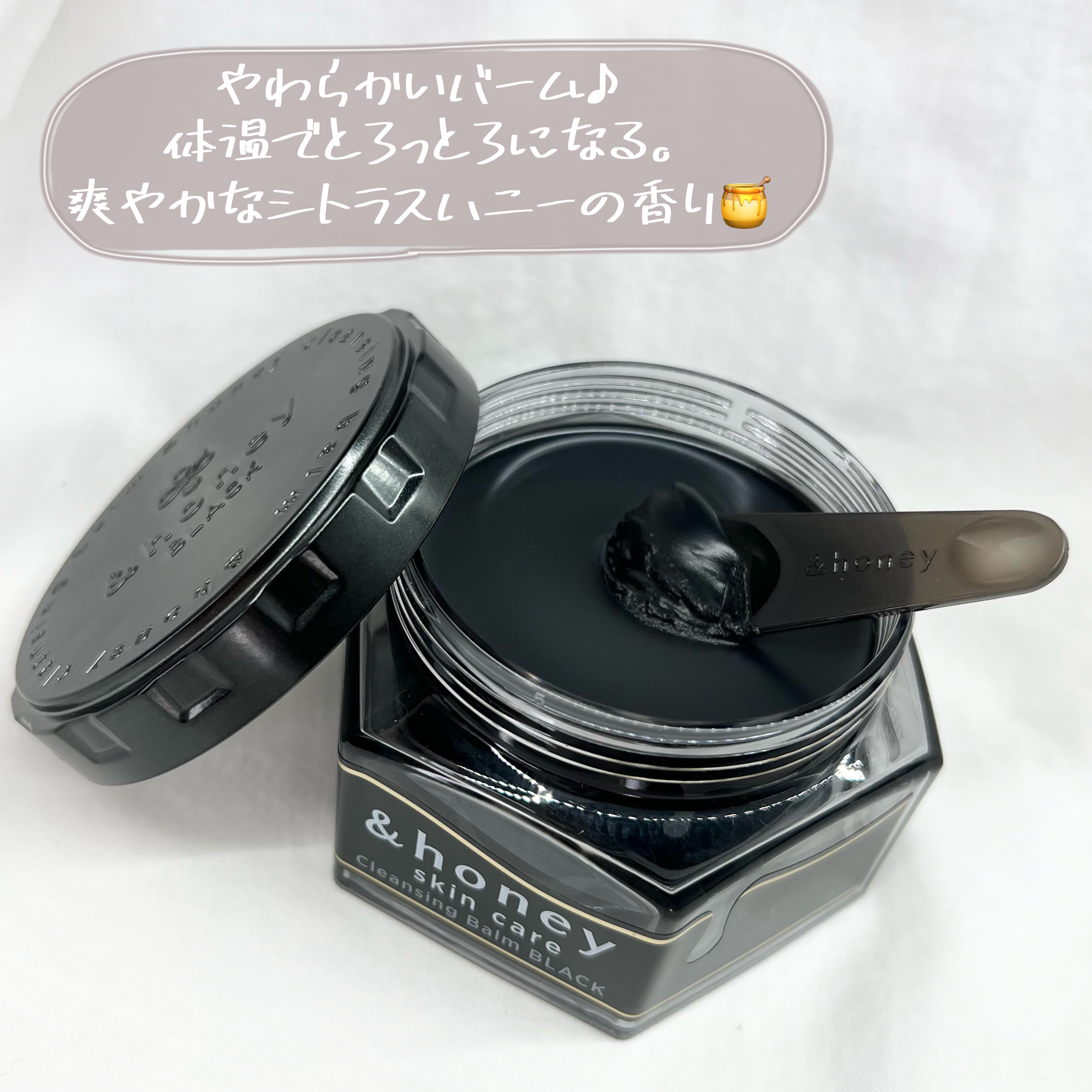 - &honeyクレンジングバームから頑固な毛穴の黒ずみ汚れ・皮脂テカリをケアする新シリーズ【クレンジングバーム ブラック】登場! 黒炭*1・黒泥*2で毛穴詰まりの原因となる皮脂汚れ、古い角質を吸着除去することで、さっぱりとしたつるん肌へ導きます。 さらに製品の90%以上を黒蜂蜜*3などの保湿&整肌成分で構成。 徹底した毛穴ケアに特化しながら、お肌に優しい使い心地のつっぱり感のないクレンジングが誕生しました。 香りはシトラスハニーのスッキリ爽やかな香り。 *1 炭(吸着) *2 海シルト(吸着) *3 ハチミツエキス(保湿)