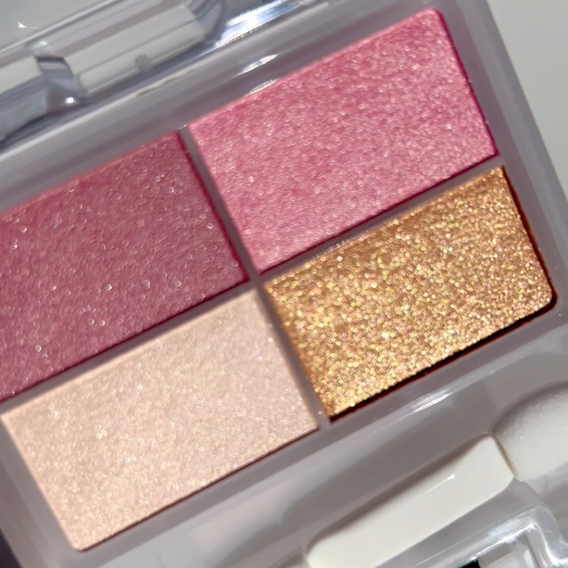 - シェードカラー・ミディアムカラー・ニュアンスカラー・スパークルカラーの4色が1つにまとまったメイクパレットです。 アイシャドウだけでなく、アイブロウやシェーディングとしても使えるカラーが入っているので、眉から目元まで、パレット1つでアイメイクが完成します。 カラーの組み合わせ次第でアレンジが広がり、様々なシーンに合わせたアイメイクを自在に楽しめます。 高密度ウレタン素材のチップ付きです。