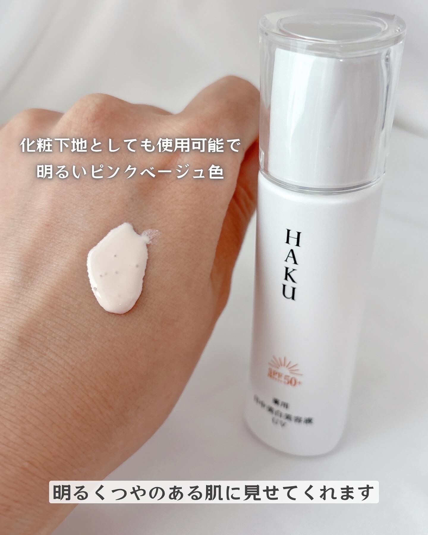 使用感はなめらかなテクスチャで つけ心地も軽く伸びがいい♡ 日中の下地としても使えるし、ほんのりピンクベージュカラーだから近所のおでかけにはこれとパウダーでも使えそう🌷 2種の美白有効成分 (4MSK*¹、m−トラネキサム酸*²)