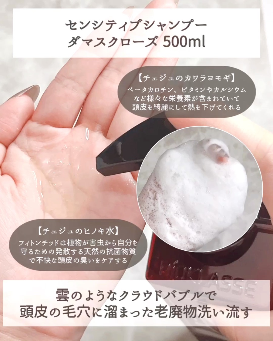 | シャンプーはすっきり感があるさっぱり系。トリートメントは濃密なテクスチャでしっとり感はあるのに仕上がりはさらっと軽い | 詳細を見る | ||