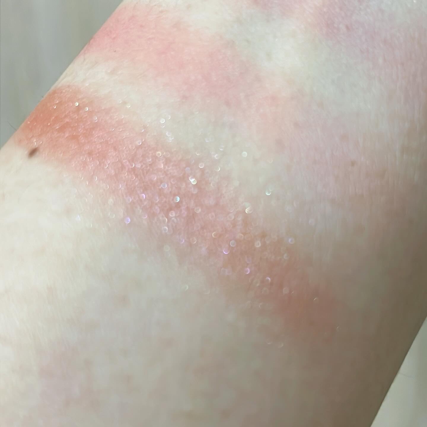 ADDICTION最近新作出すたびにバズってない!?🤩 今回大注目は032P Private Note。ただのホワイトに見えるのに、手に出すと偏光ピンクがこれでもかと輝く‼️このギャップに萌えている人が続出💘 マットカラーの103M Tender Memories とともに、Holiday2021 コンパクトアディクションからの復刻色。それだけ人気だったということよね❣️ はじめはPrivate Noteだけ買おうと思ったんだけど、アディクションのマットが好きだからTender Memoriesを手に出したらほんのりピンク味のあるブラウンが可愛くて🙈💕他の既存色と比べてみたけど、ブラウンに寄ってたり、ピンクに寄ってたりするものが多く、Tender Memoriesが一番ピンクとブラウンの中間だった‼️ 発色が優しいから、初めにアイホール全体に入れるのがオススメ。