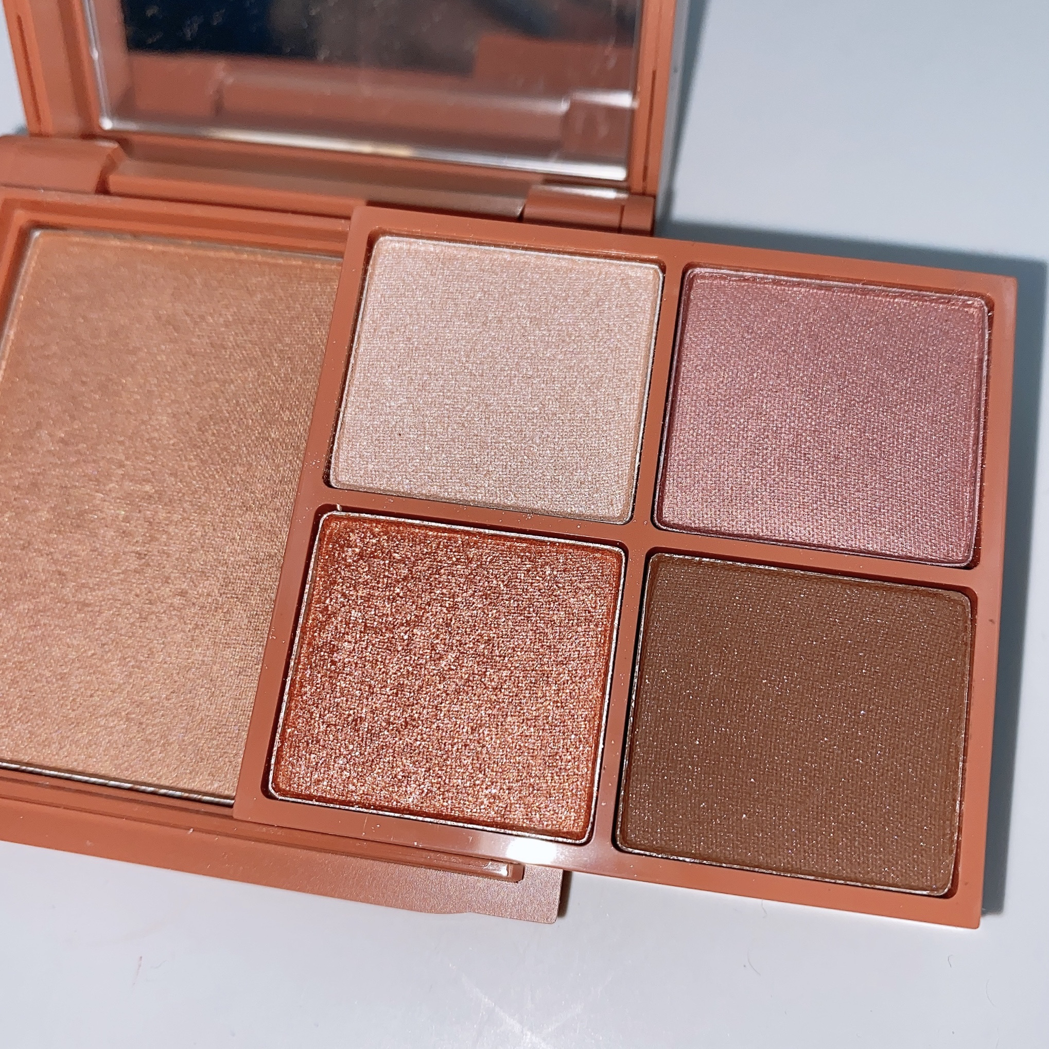 - 〈数量限定〉 ヌーディカラーの4色アイシャドウと輝くチーク兼ハイライト1色が1つになった、 全て新色の限定スペシャルパレット。 重ねづけしやすいシルキーなパウダーで、立体感とツヤのあるニュートラルな魅力を引き出します。