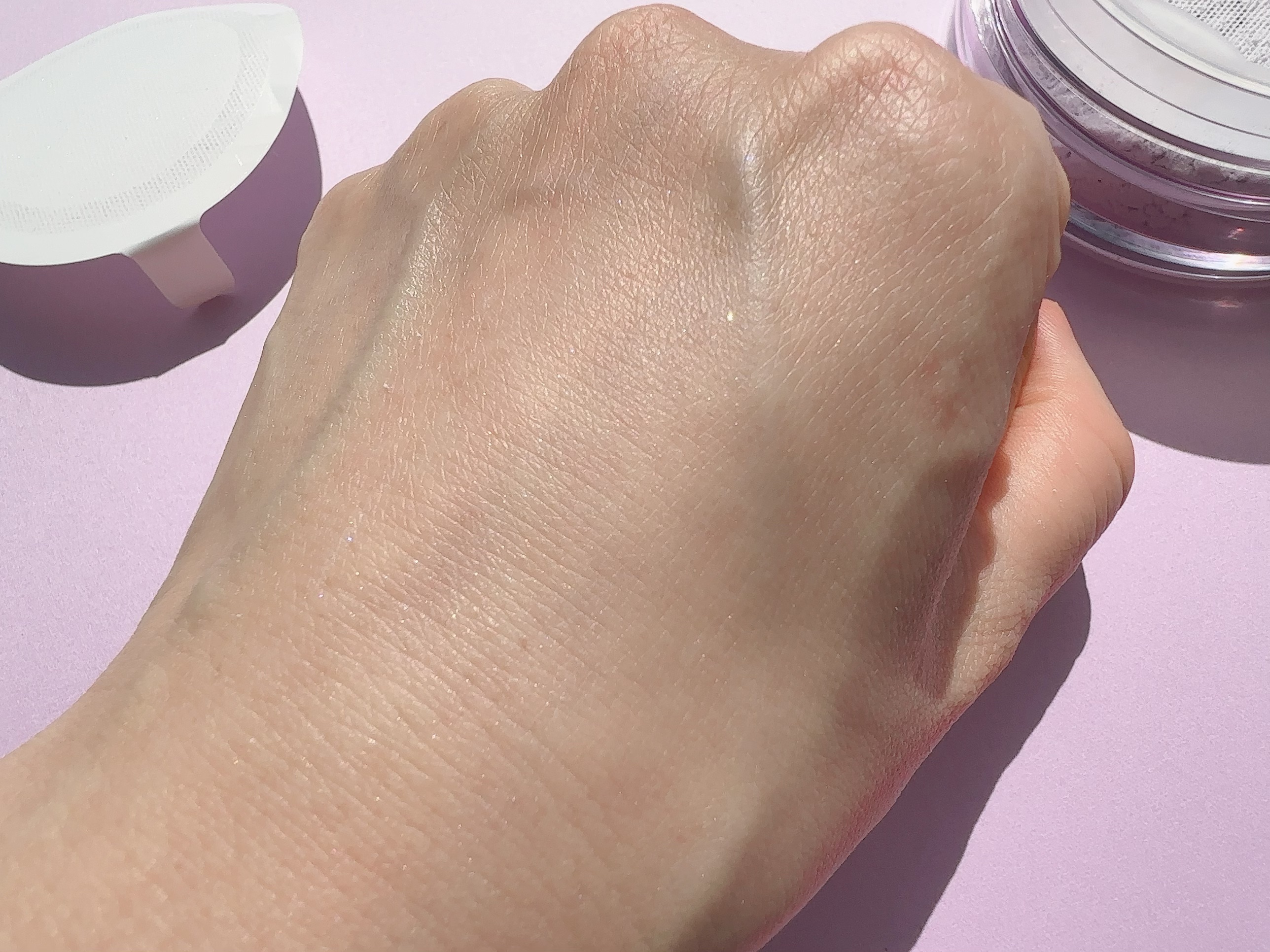 まず見た目が可愛い🥹 お粉、さらっさらで綺麗なツヤ感。軽くてサラッサラで、顔に塗ったらふわっと柔らかいツヤ感が出て綺麗。 でも真夏のあっつい時期は時間が経つとテカリが気になりました🤔 夏場で汗かいたからかな… でも可愛い。それだけでもう、買って良かった。眼の保養。 春秋冬には大活躍間違いなしだと思う!