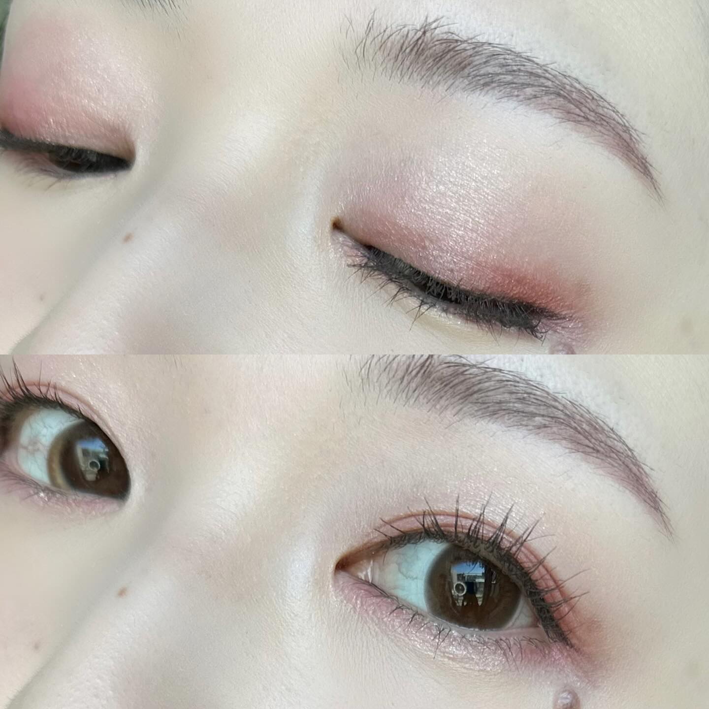 手に試した感じではベースのブルーは弱く、ラメ自体がブルーで可愛すぎる…! BAさんはパウダーアイシャドウのベースにもおすすめと教えてくれたので、 今日はこちらをベースにピンクブラウン系の アイシャドウを使ってメイクしてみたよ🫶🏻 肌に伸ばすとすぐにサラサラになるから ベタベタが残ったりしないし、 パウダーアイシャドウの上に重ねてもヨレない◎