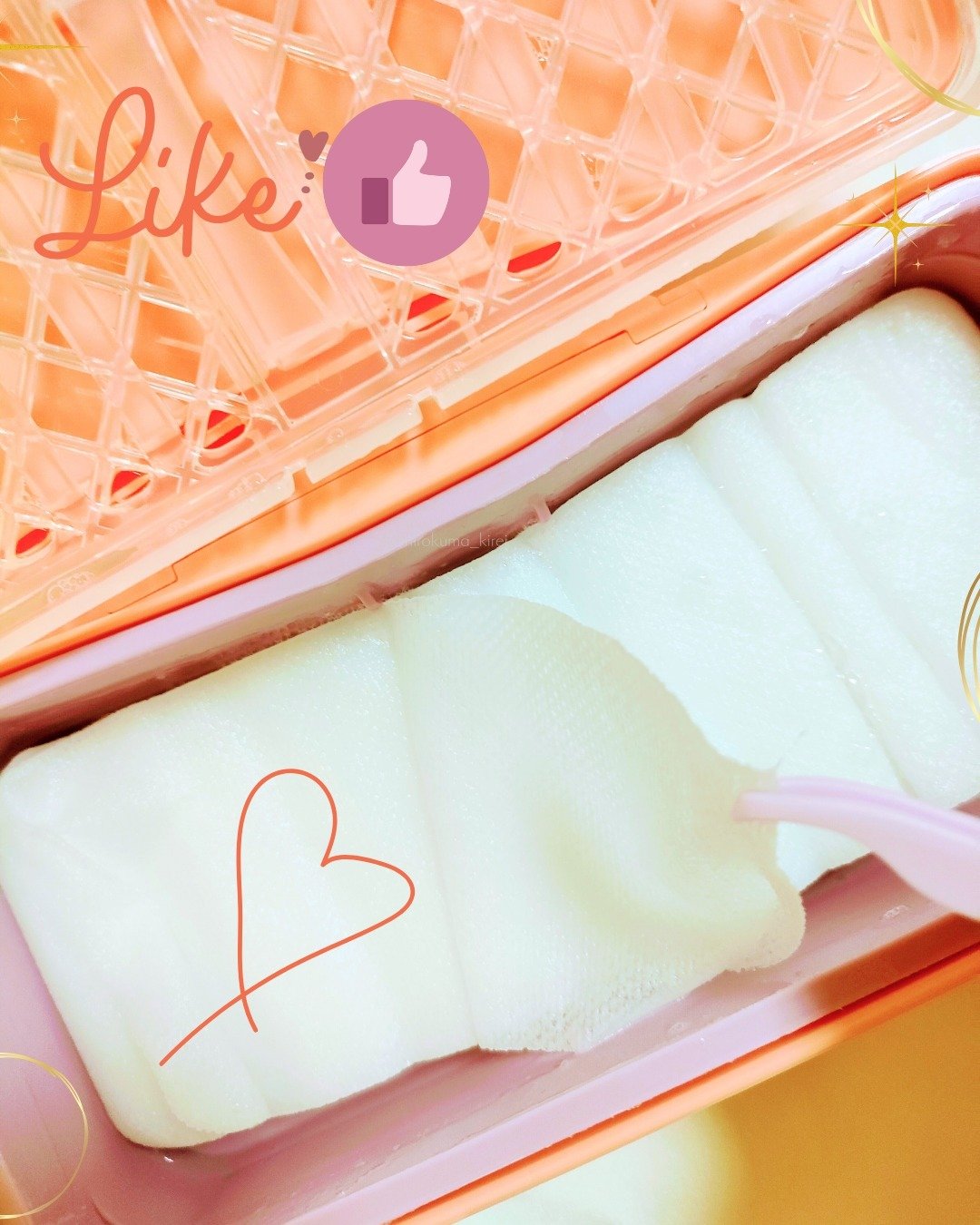 美容液がたっぷり染み込んでいて シートも純綿シートなのだそうで 付け心地がやわらかくて◎ 密着感もよくズレ落ちない。 長方形で伸びるから フェイスラインや首のケアにも使える🫶 リフティング効果が期待できる特徴があるからオバ肌の私にはかなりあってた✨ 部分使いができのもとても便利で 頬だけ、口元だけとか 気になる箇所にピンポイントでつかえるのが◎