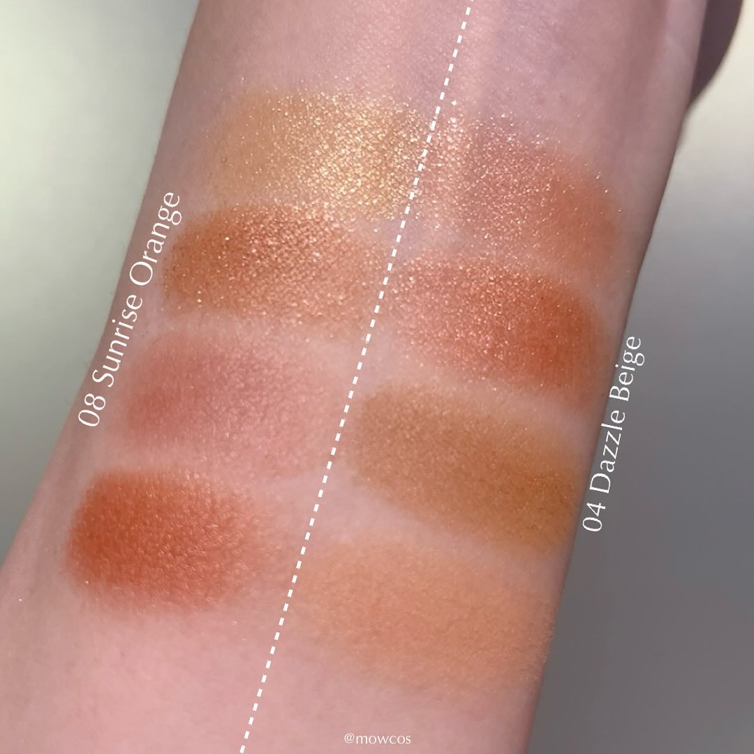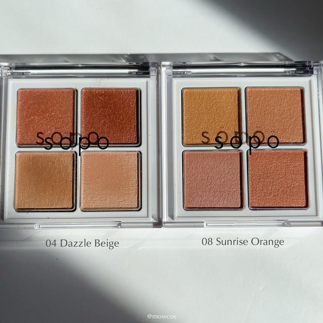 sopo春夏の新作の空をテーマにしたきらめきと透明感のアイシャドウパレットが登場✨ 07 サイレントベージュはオーソドックスで使いやすいかわいさ!透け感のある発色がお上品でとっても可愛い💞 08サンライズオレンジは遊び心たっぷりのかわいさのオレンジ! サンライズオレンジのこの黄み感とキラッキラは好みすぎたああ!
