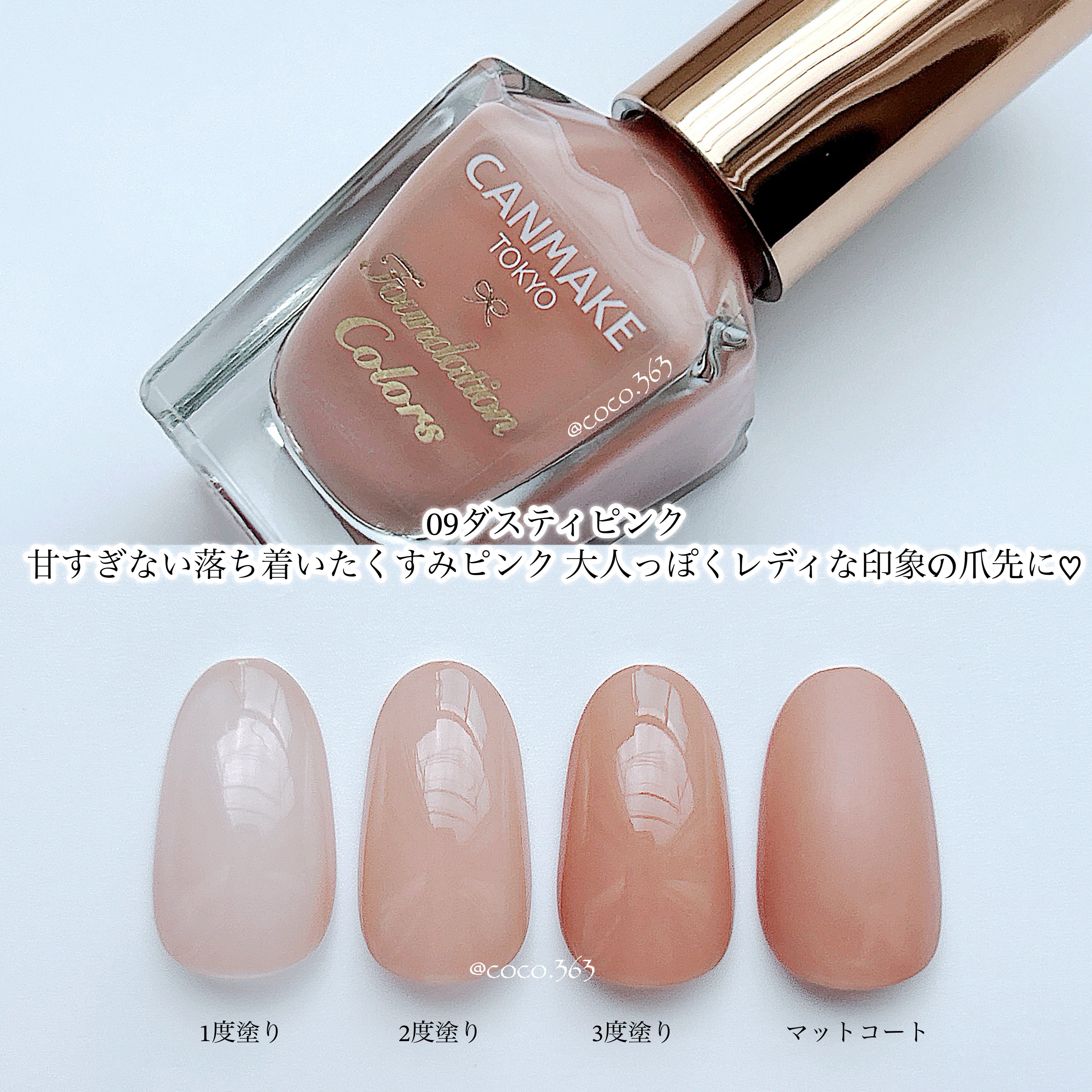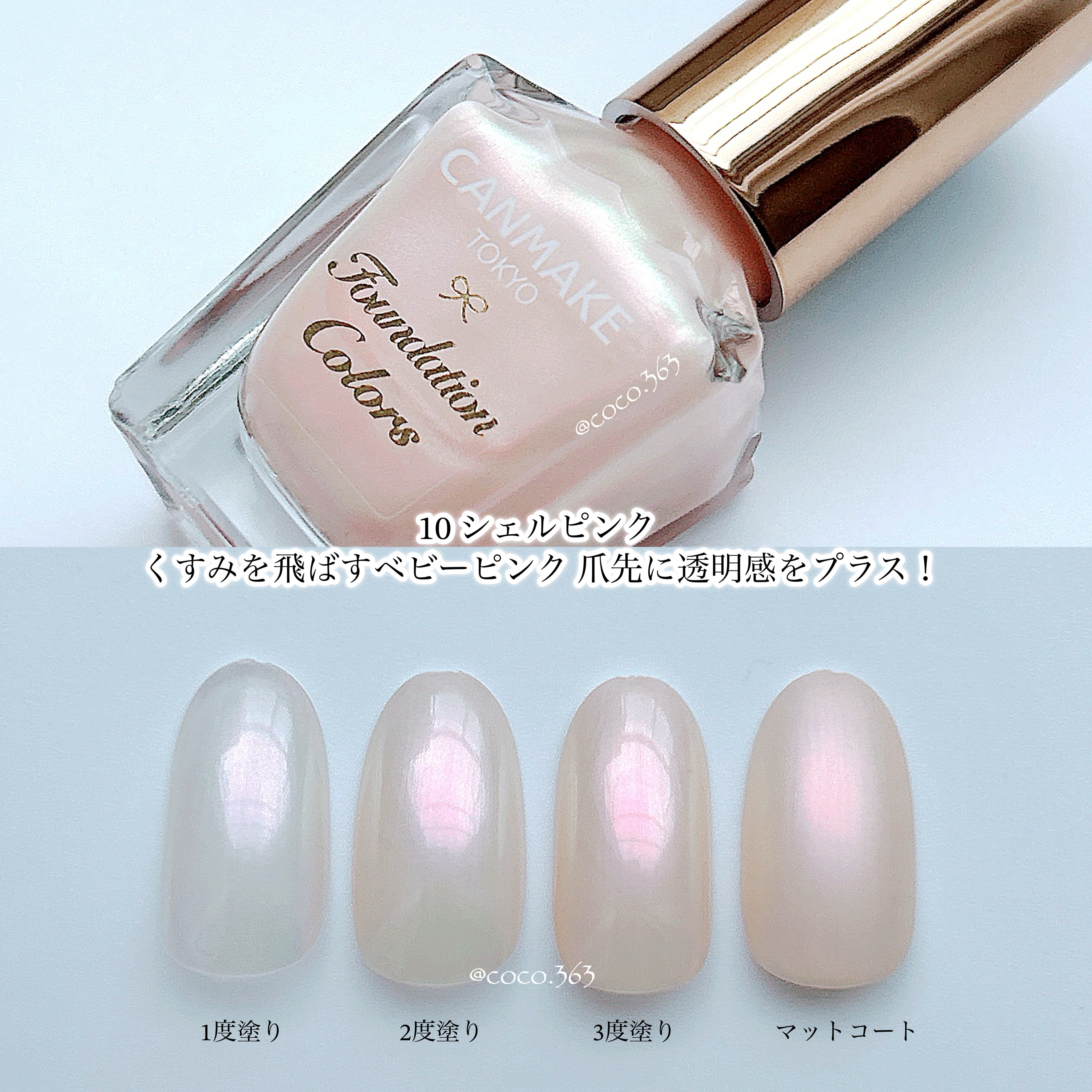 ハケがラウンドした平筆にリューアルしてさらに塗りやすくなったキャンメイクのネイル💅 ファンデーションカラーズはベースコートの代わりとしても使用出来るので時短ネイルにも🫶🏻 どれもお気に入りの1軍ピンクです✨