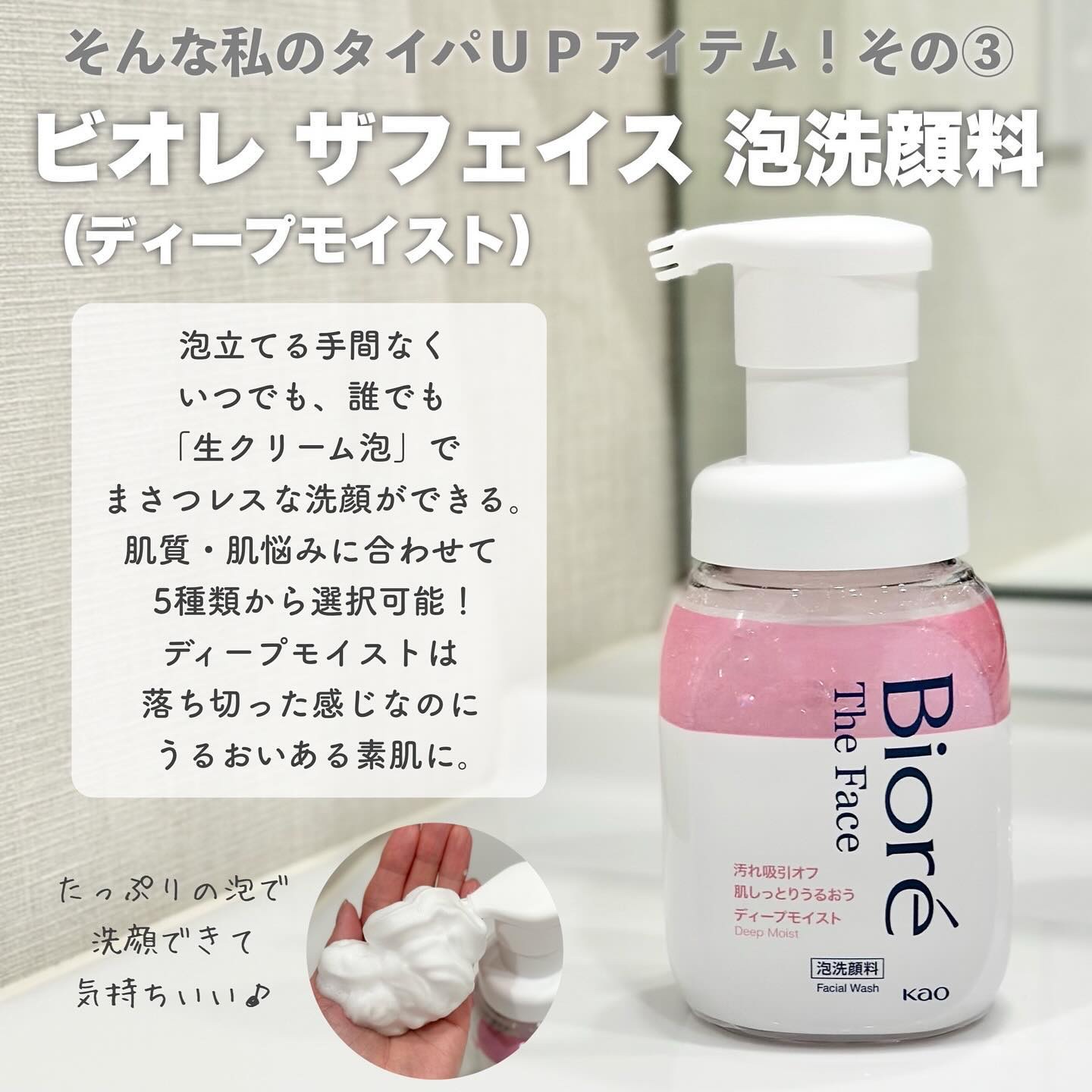 花王株式会社さまからビオレザフェイス泡洗顔料を提供していただきました🫧プチプラ・ドラコス!手に入れやすさ◎なビオレザフェイス泡洗顔料 (ディープモイスト)ピンクのディープモイストは乾燥悩み、保湿を重視な使い心地💗肌悩み別に5タイプもあるよ◎ス...