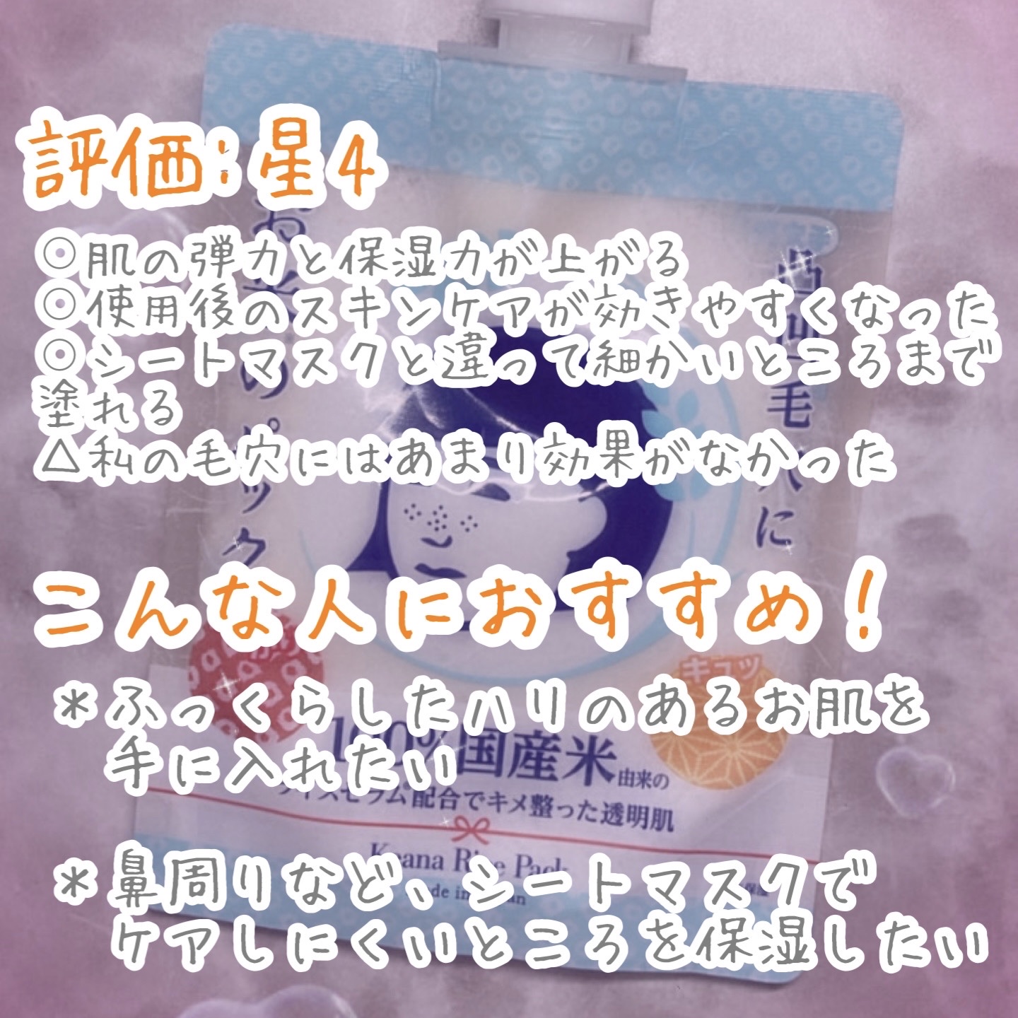 毛穴撫子お米のパック ¥1250円このパック毛穴ケアに凄くいいです‼もっちりとしたテクスチャーで塗りやすい‼国産米由来の美容成分ライスセラム配合でキメを整えふっくら肌へ‼毛穴がキュッと引き締まり、内側から潤う感じがしました❤液だれしないから...