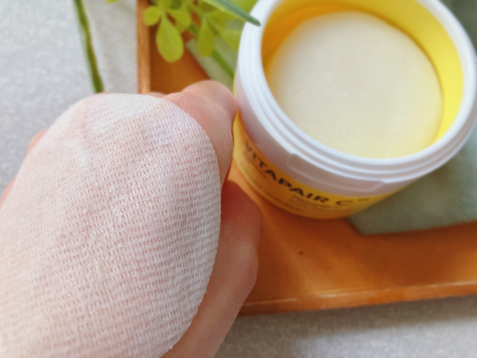 真っ白な英国産生ビタミンC20%が入った高濃縮美容液。 無水なので、ぽってりとしたクリーム。密着感が凄いです👏 高機能性美白3種成分を配合し、手軽に肌に貼るだけで肌のキメを整え、透明感ケアに効果 ひたひたの美容液を吸い込んだパッドは、お肌にしっかりと密着💛