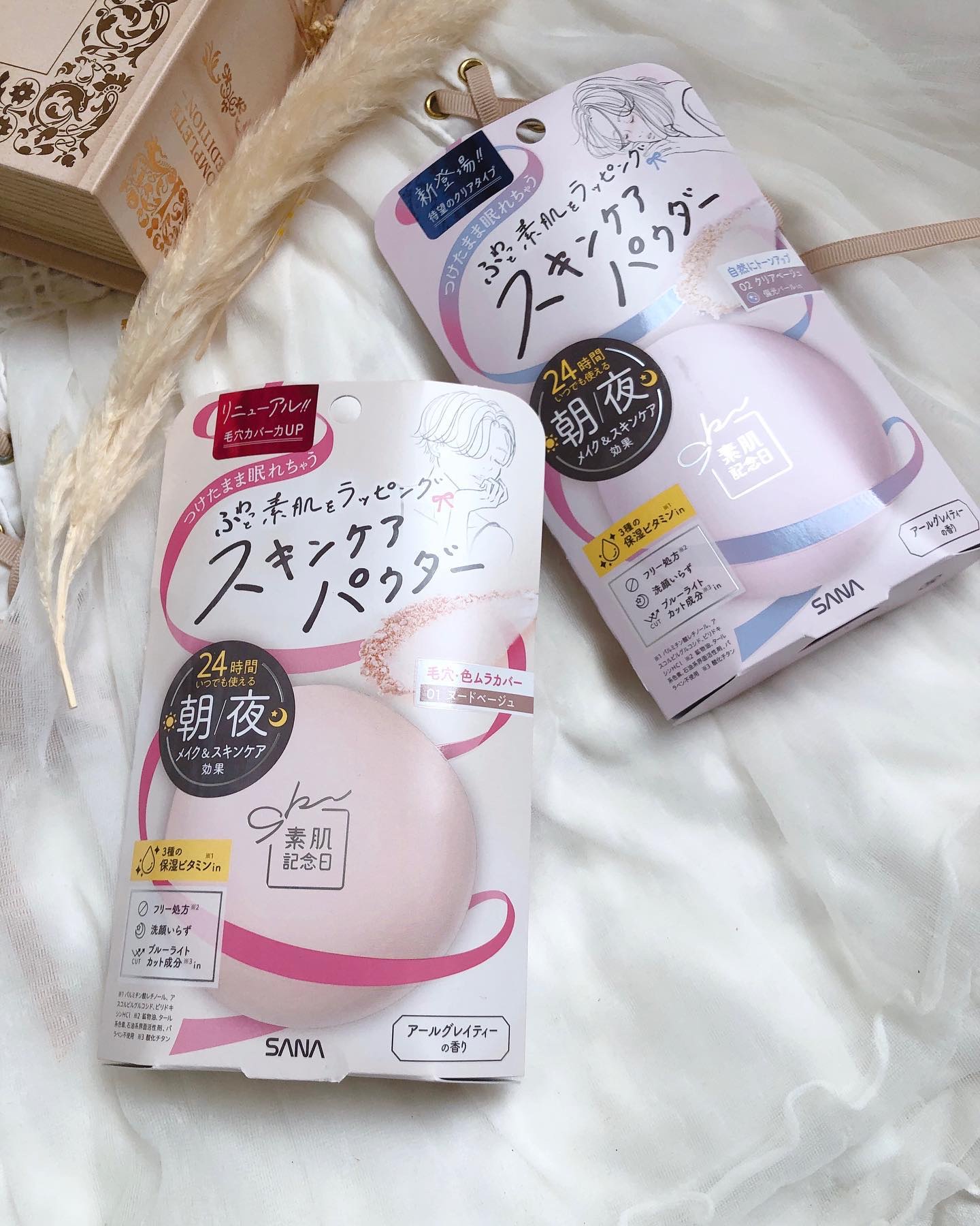 ♡メイク♡SANA素肌記念日 薬用 スキンパウダー 10g・ホワイトベージュ (医薬部外品)・01ヌードベージュ・02クリアベージュ (偏光パールin)【24時間いつでも使える/朝夜メイク&スキンケア効果】3つ共通特徴↓ふかふか夢心地贅沢パフ...