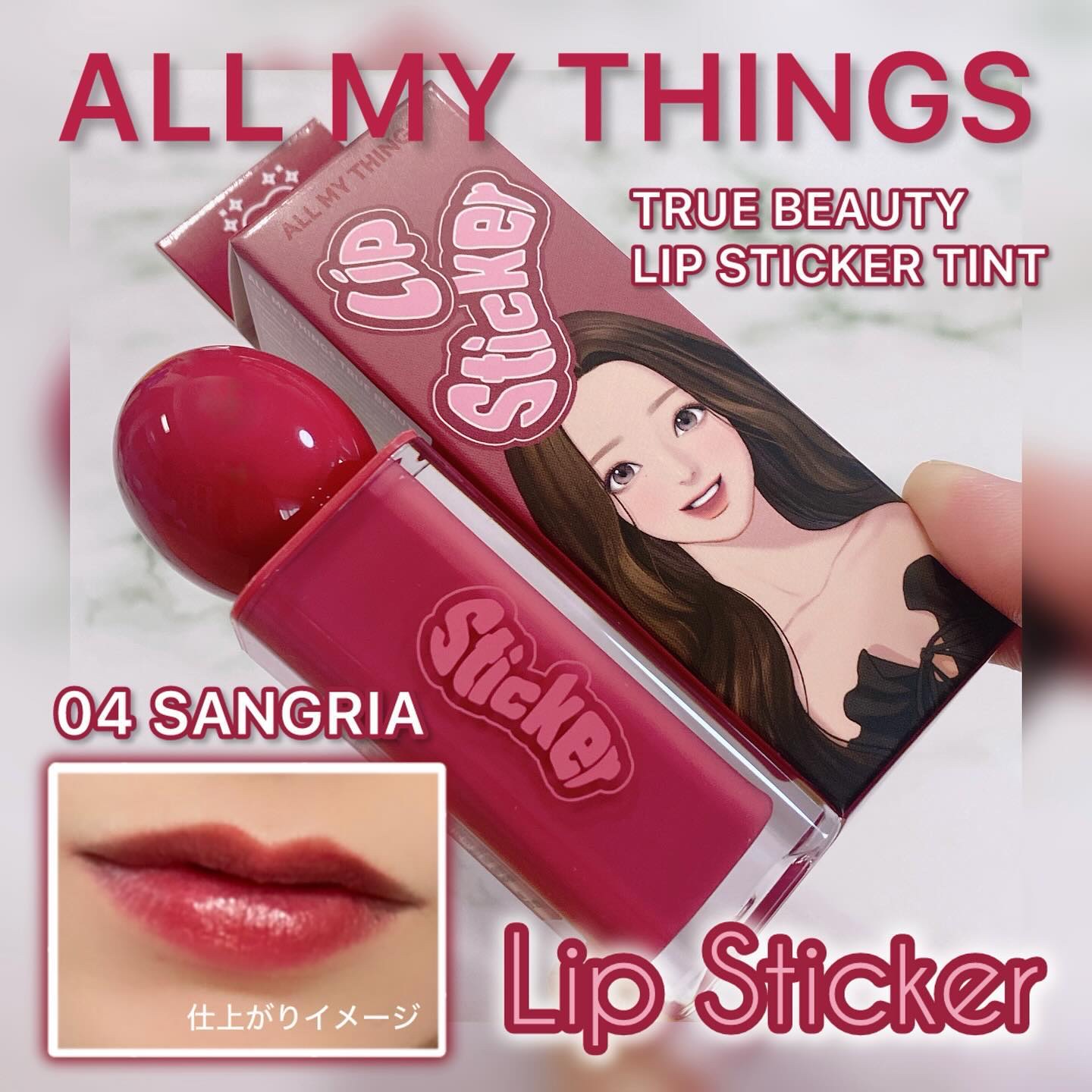 allmythings オールマイシングスリップスティッカーティント 04 サングリア女神降臨パッケージがまず可愛い♡色持ちが継続される感じがする〜🤗...