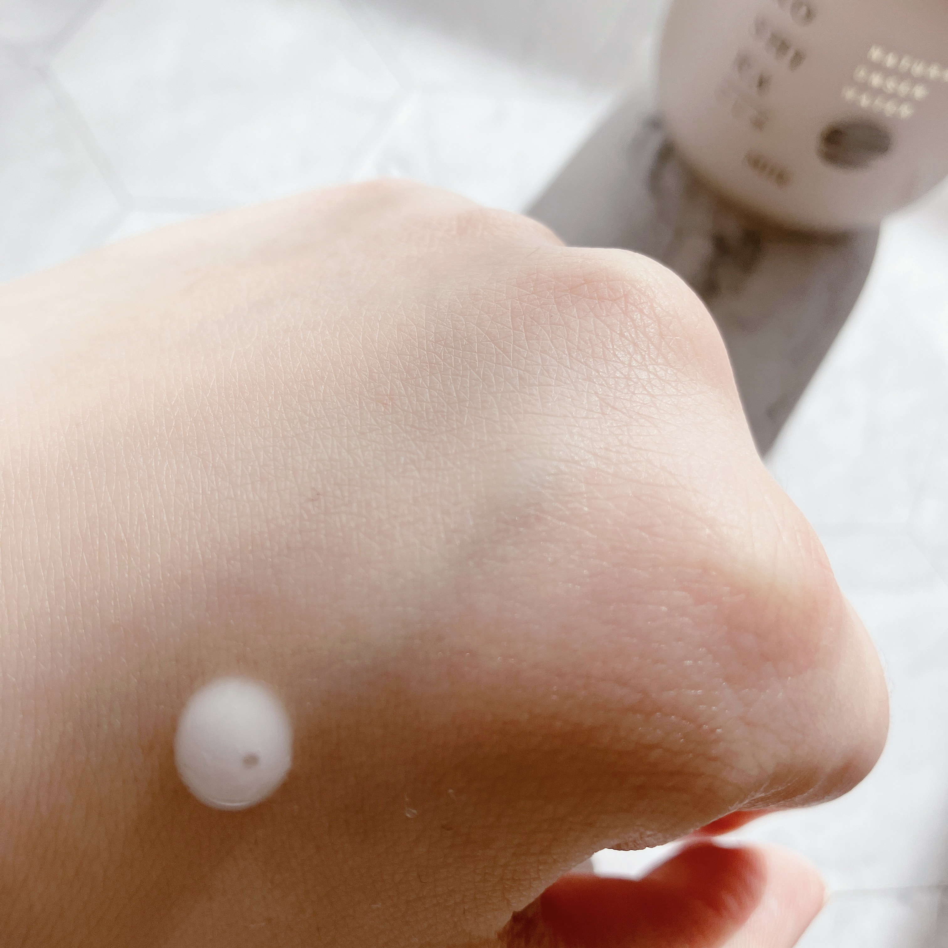 手に乗せた感じだと少し重そうなテクスチャーだなと思いましたが、軽いつけ心地で伸ばしやすい。 クリームで油ぽくないので、脂性肌よりの私でも全顔で使えました! 肌が敏感な方や乾燥ぎみな方は肌がピリつくかもと書いてありましたが、私はピリつきもなかったです! ピリつきがあった方はしっかりと保湿してから塗るといいそうです😌💕