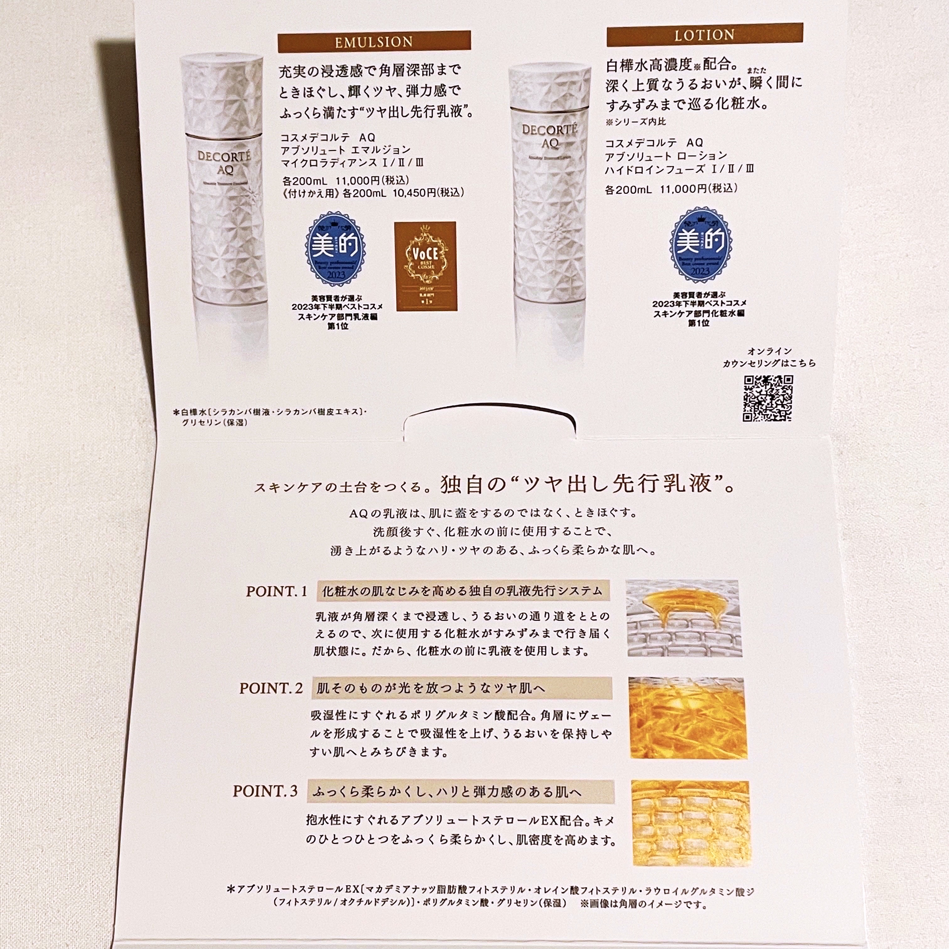 DECORTÉAQ🤍🤍🤍🤍🤍🤍🤍🤍🤍🤍🤍ライン使いなめらか透明感きれい感香りも素敵♡#アブソリュートエマルジョンマイクロラディアンスⅡ#先行乳液♡#AQアブソリュートローションハイドロインフューズⅡ#化粧水気になってる方は是非チェックしてみて...