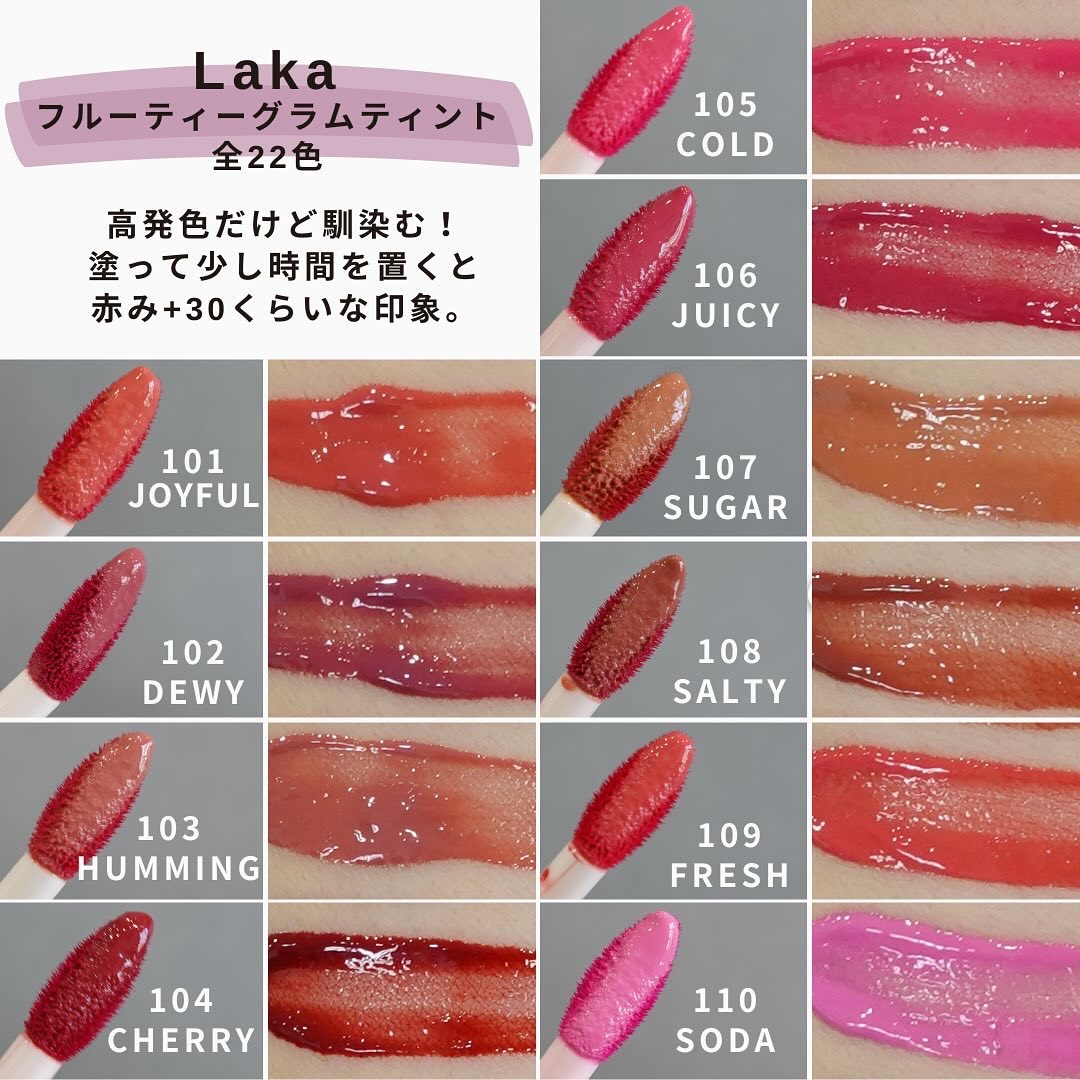 Lakaフルーティーグラムティント紹介♡おはようございます☺︎mです♪今回はメガ割で購入した際におまけで頂いたLakaのティントを使用したので、その感想をお届けします♡【使った商品】Laka フルーティーグラムティント【色味】122 ロージー...