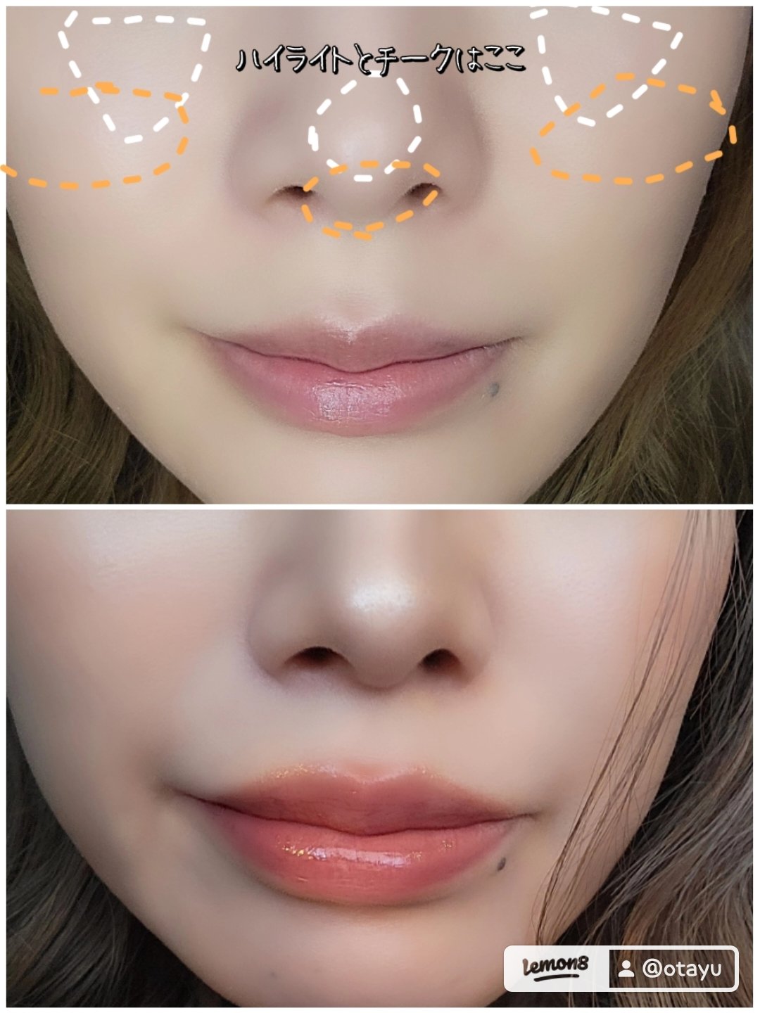 ちゅるっと見せが今のおすすめかな? ちゅるっとさせるには細いブラシがおすすめ❤ あーメイクって詐欺れるから楽しい。 盛れなかった日ももちろんあるけど盛れると1日楽しくなれる。 ハイライト、チーク、シェード、一体どこに何を入れれば盛れるの?!!って迷走中の皆さんに。