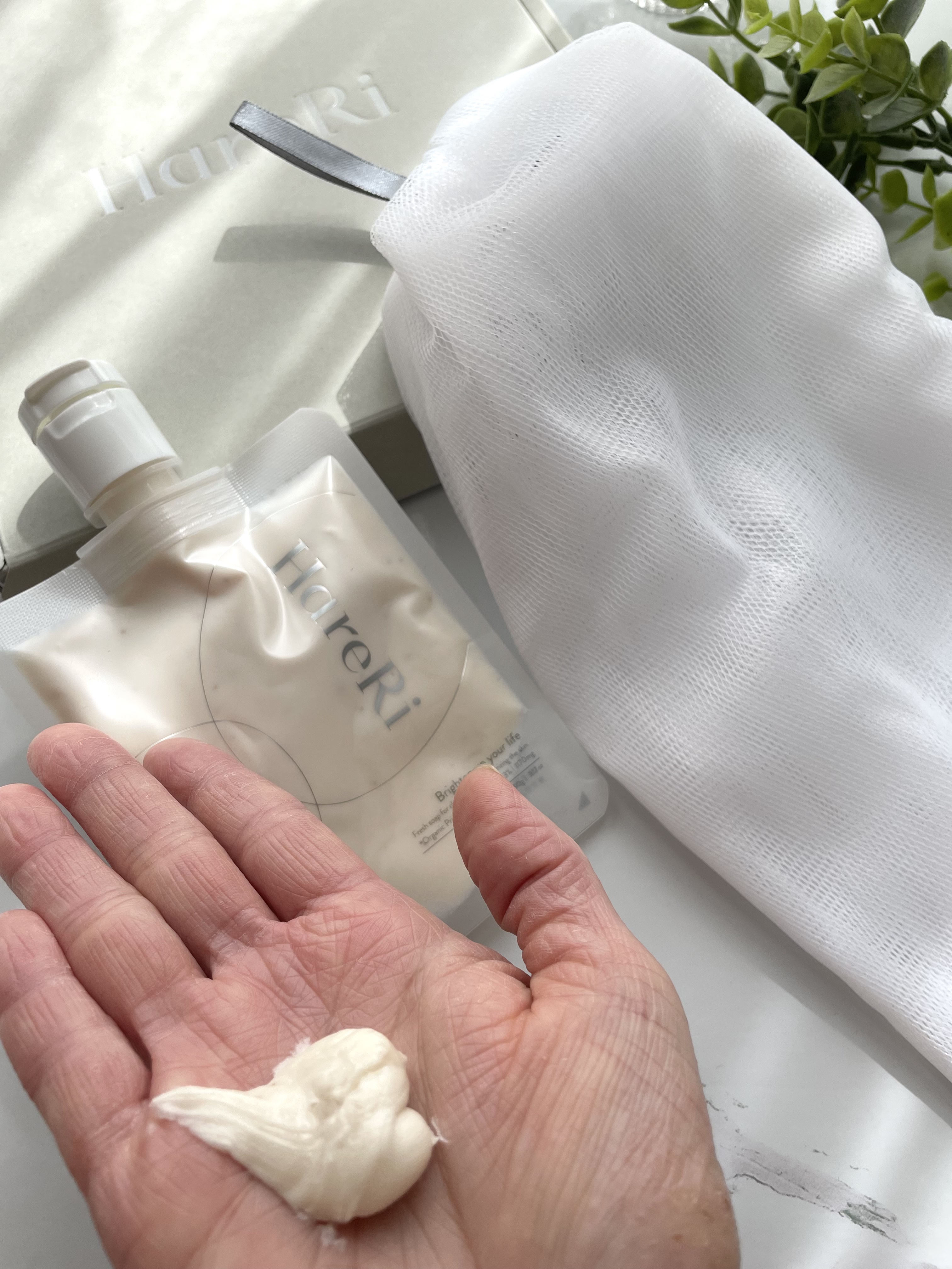 「生せっけん」だからこそ実現できた高保湿保ディソープ。 ウチワサボテン由来のオーガニックオイルの保湿力 低刺激処方 こちらは、石けんにたっぷり含まれた良質な保湿成分がお風呂から出る瞬感にはまるで肌がコーティングされたかのように皮膜感を実現することによって、湯上がりの肌のピリつきを軽減してくれるそうです。 1センチほどせっけんを出して、しっかりと泡立てることがポイント! ライトベージュでやや粘りのあるテクスチャー。 さらに、泡立てネットを使うと濃密でふわふわの泡があっという間に! ボディソープでは珍しいチューブタイプの容器はワンハンドで開けられるキャップなのと泡立ての重要さを強調するように、今までに見たことのないくらいとっても大きな泡立てネットも付属!これは嬉しい。 パッケージもオシャレなので敏感肌でお悩みの方への贈り物でも喜ばれそう◎