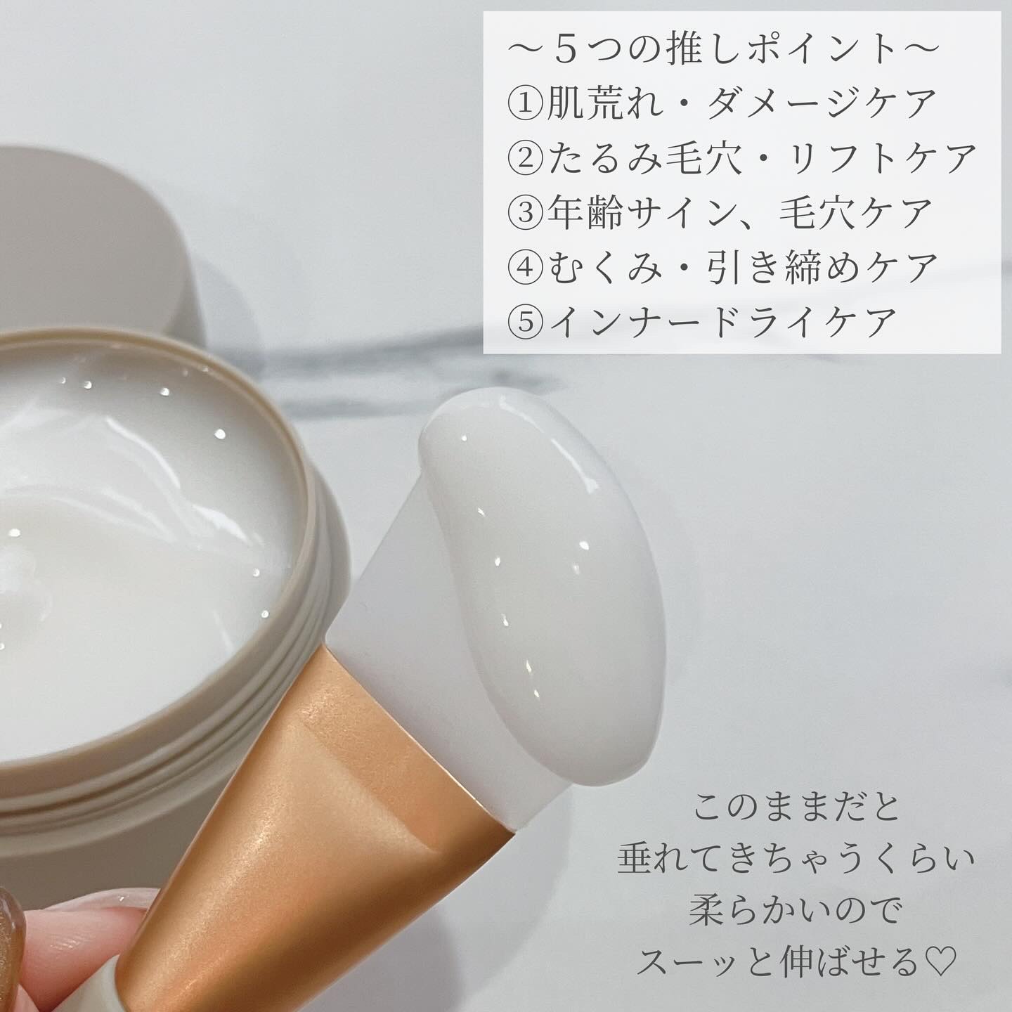 | スキンケアランキング第26位 | テクスチャーはとろみのあるリッチなクリームで、肌にのせるととろけるように広がります。 | 詳細を見る | |