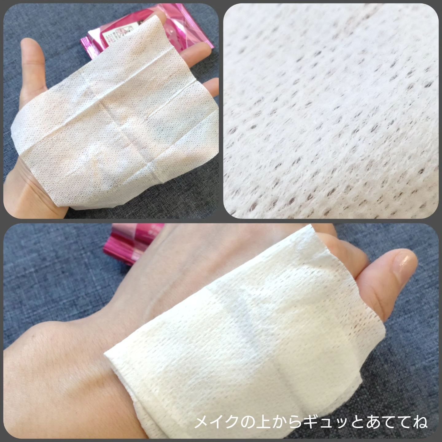 1枚でさっとふんわりメイク直し。メイクの上から押さえるだけで「ふんわりぼかしパウダー」が肌の上にオン。毛穴、テカリ、肌のトーンなど日中気になってくるメイク肌をほどよくぼかします。 無香料・無着色です。Tゾーンのテカリ・ファンデの毛穴落ち防ぐ「さらマット肌持続シート」。テカリが気になった時に、メイクの上からじんわり押しあて、「皮脂吸収ヴェール」をオン。 使用後のほうがキレイに見えます。しばらくするとサラッサラになるので、メイク直しもとっても快適。