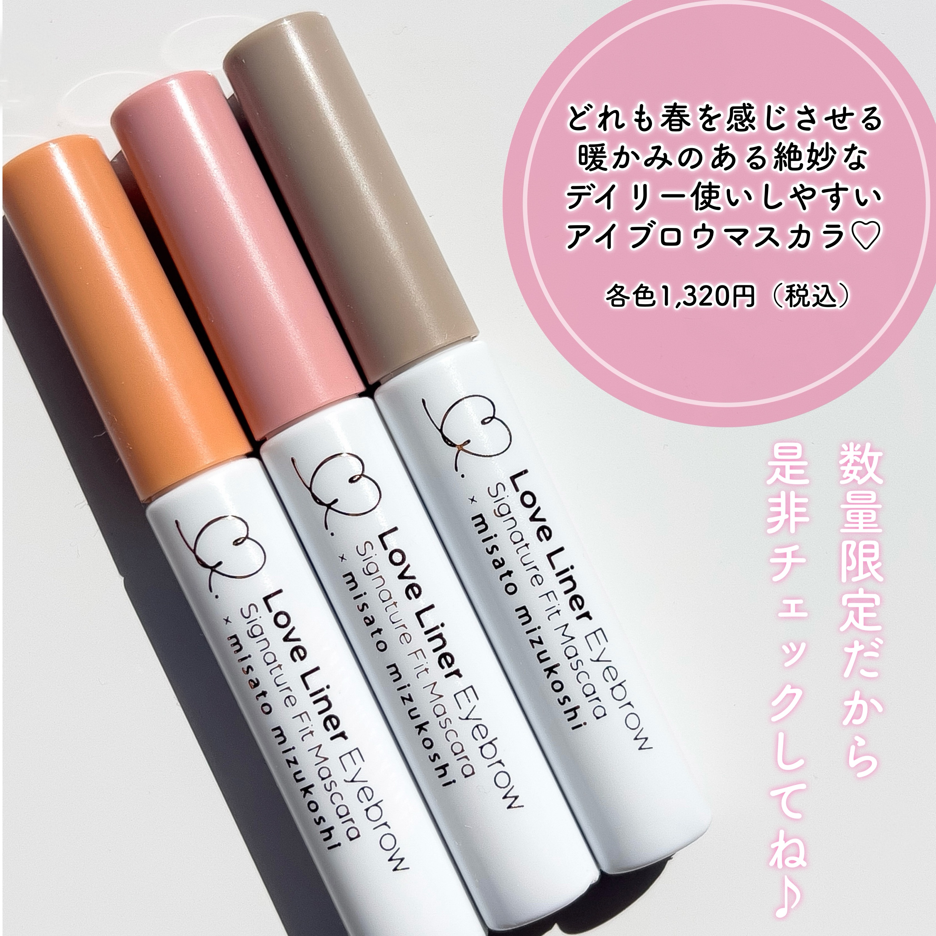 - 〈限定発売〉美容クリエイター水越みさとさん監修アイブロウマスカラ第2弾。 ・“眉の存在感を和らげる”ことをテーマに、春らしい絶妙なニュアンス感カラー。 ・地肌につきにくく塗りやすい角度つき極小ブラシ採用。 ・1本1本色づき自然になじむアイブロウマスカラ。 ミルクティピンク…温かみのある愛されピンクブラウン ラテグレージュ…ソフトな印象を与えるこなれグレーベージュ アプリコットキャメル…自然な抜け感が出るおしゃれオレンジブラウン
