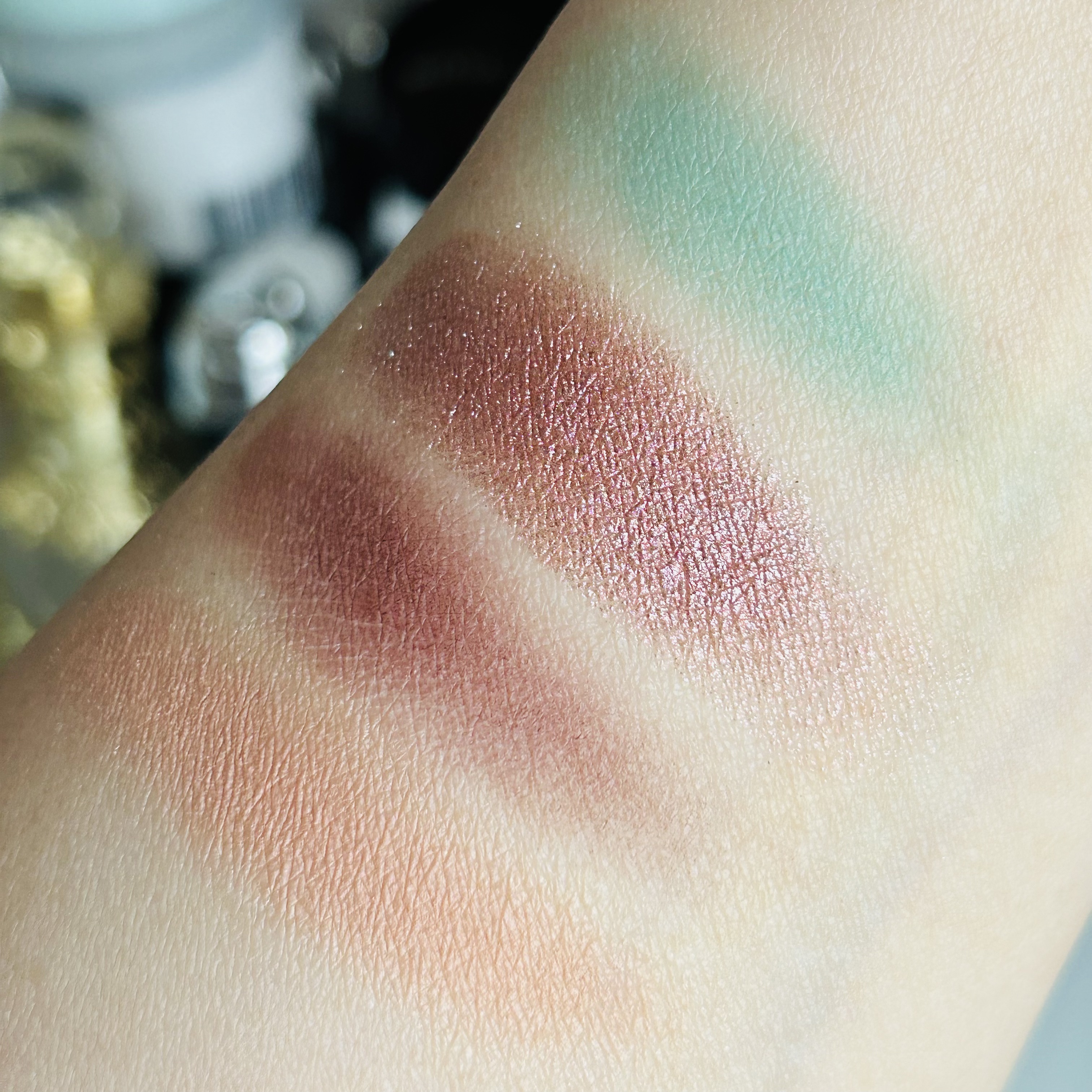 これは可愛いー!✨✨ミシャグリッタープリズムシャドウホリデー限定と、PLAZA、MINiPLA限定カラー🎄✨coyuちゃん、情報ありがとう💕ホリデー限定の、GEX02くすみピンクベース×グリーン、ブルーグリッターGEX01メタルベージュ×ゴー...