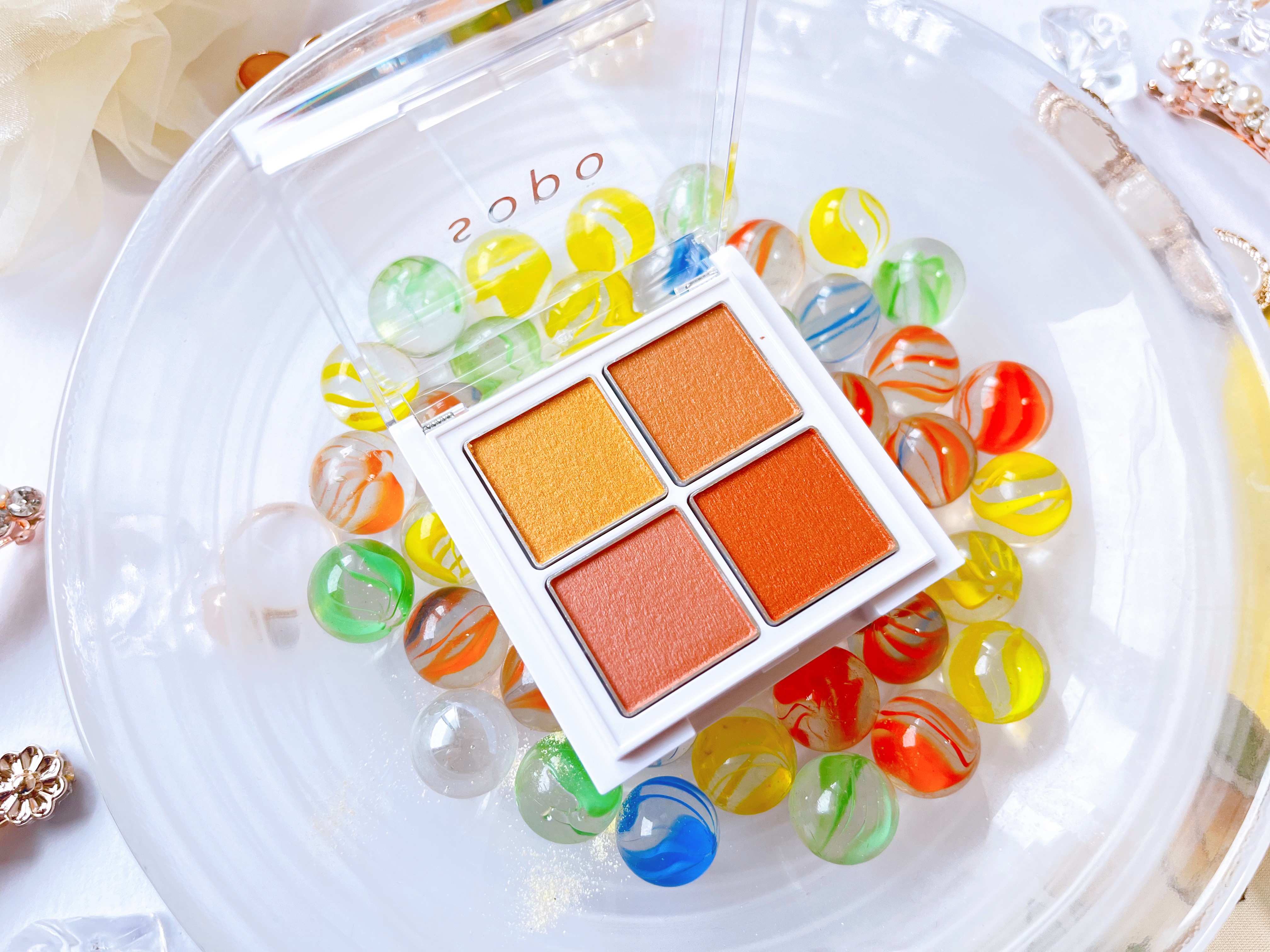 07サイレントベージュ 春の暖かみを感じる柔らかいベージュパレット。オーソドックスで使いやすいカラーの入った可愛いシャドウ。 08サンライズオレンジ 朝の日差しの様なきらめくイエローオレンジパレット。締め色なし👀✨遊び心のある鮮やかカラーの入った可愛いシャドウ。 空をテーマにしたきらめき×透明感のアイシャドウパレットだよ⭐️