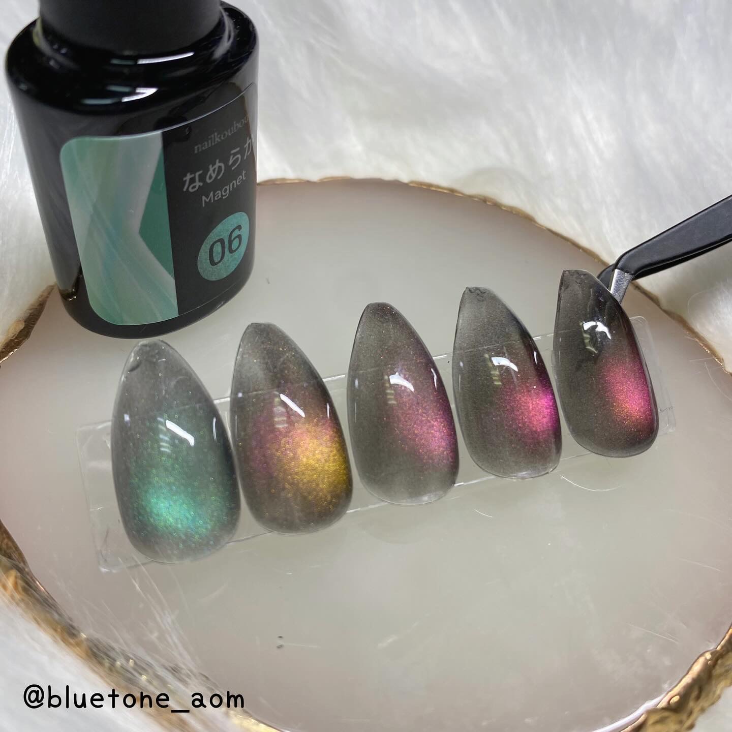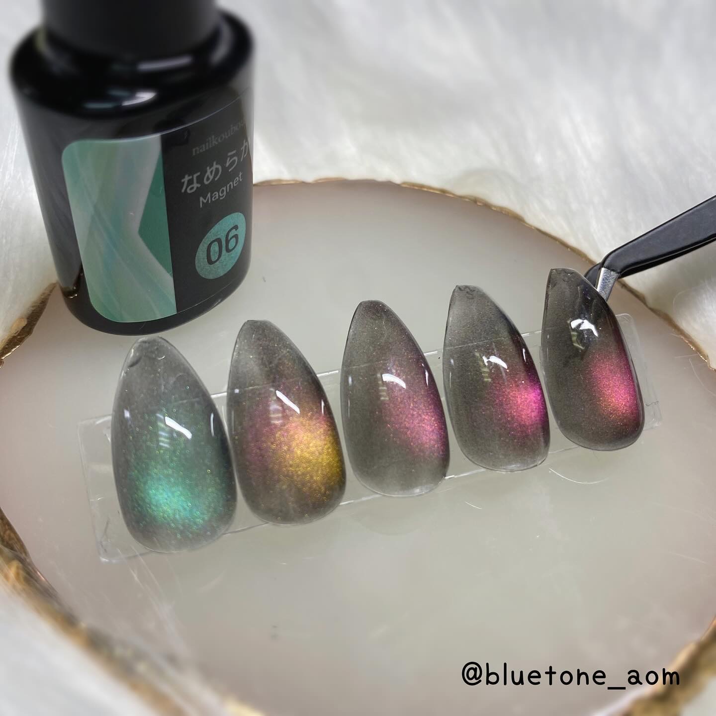 微粒子マグネットが出たよー!!! 今までSeriaから出たマグネットなんせ粒子が動きにくいっていうのがあったので、今回もどうなんやろ…って期待半分、諦め半分って感じで塗ってみたんですがめ、めちゃくちゃ動くううう!!!! Silkyシリーズは肌なじみ良いカラーでオフィスネイルにも使えそう!手が綺麗に見えそう☺️ 110円でこのクオリティはまじかよ、、、と驚いております🥹 微粒子マグネット好きな方はおすすめです!