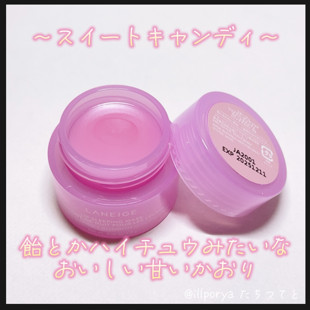- 寝ている間にケアしてふっくらぷるぷるにうるおった唇へ。 2015年の初代発売以降、世界で2秒に1個売れている*¹LANEIGE大ヒットシリーズ *¹ 2024年グローバル販売実績 1.角質にアプローチするBerryFruitComplex (ベリーフルーツコンプレックス)*²が、 寝ている間に気になる乾燥や角質にうるおいを与え、つやのあるふっくらとうるおった唇に仕上げます。 *²ザクロ果実エキス、ブドウ果実エキス、ラズベリー果実エキス 2.ココナッツオイル(ヤシ油)を配合で、うるおいをあたえ睡眠中の乾燥を防ぎます。 3.今夜はどんな気分?5つのフレーバーから選べるワクワク感。 ■テクスチャー:やさしく馴染むなめらかなバームタイプ ■アレルギーテスト済み*³ *³全ての方にアレルギーが起こらないということではありません。 ■使用方法 寝る前に唇にたっぷり塗り、そのままお休みください。 翌朝、軽くティッシュオフします。付属のスパチュラで塗ることで、より唇の角質に馴染みやすくなります。 日中のリップトリートメントにも使用できます。