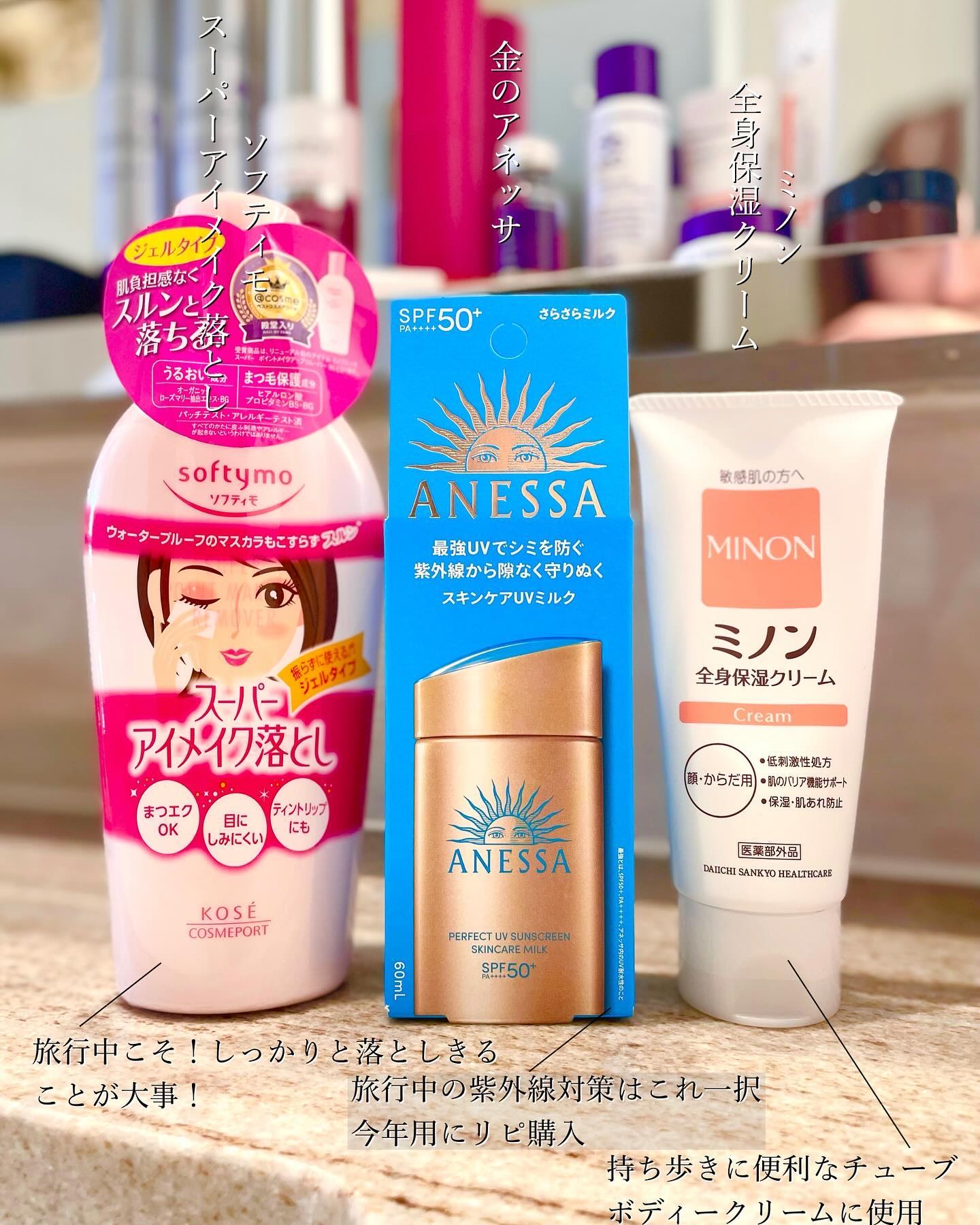🔖旅行中のスキンケア🧖♀️✈️ホテルはとにかく乾燥するし、慣れない環境で疲れが出たり…できるだけ身軽に、とはいえ妥協はしたくない!使い慣れたアイテムで、しっかり快適に保湿してくれるSAM'Uのアイテムを選びました🤍☀🌙PHセンシティブミニデ...