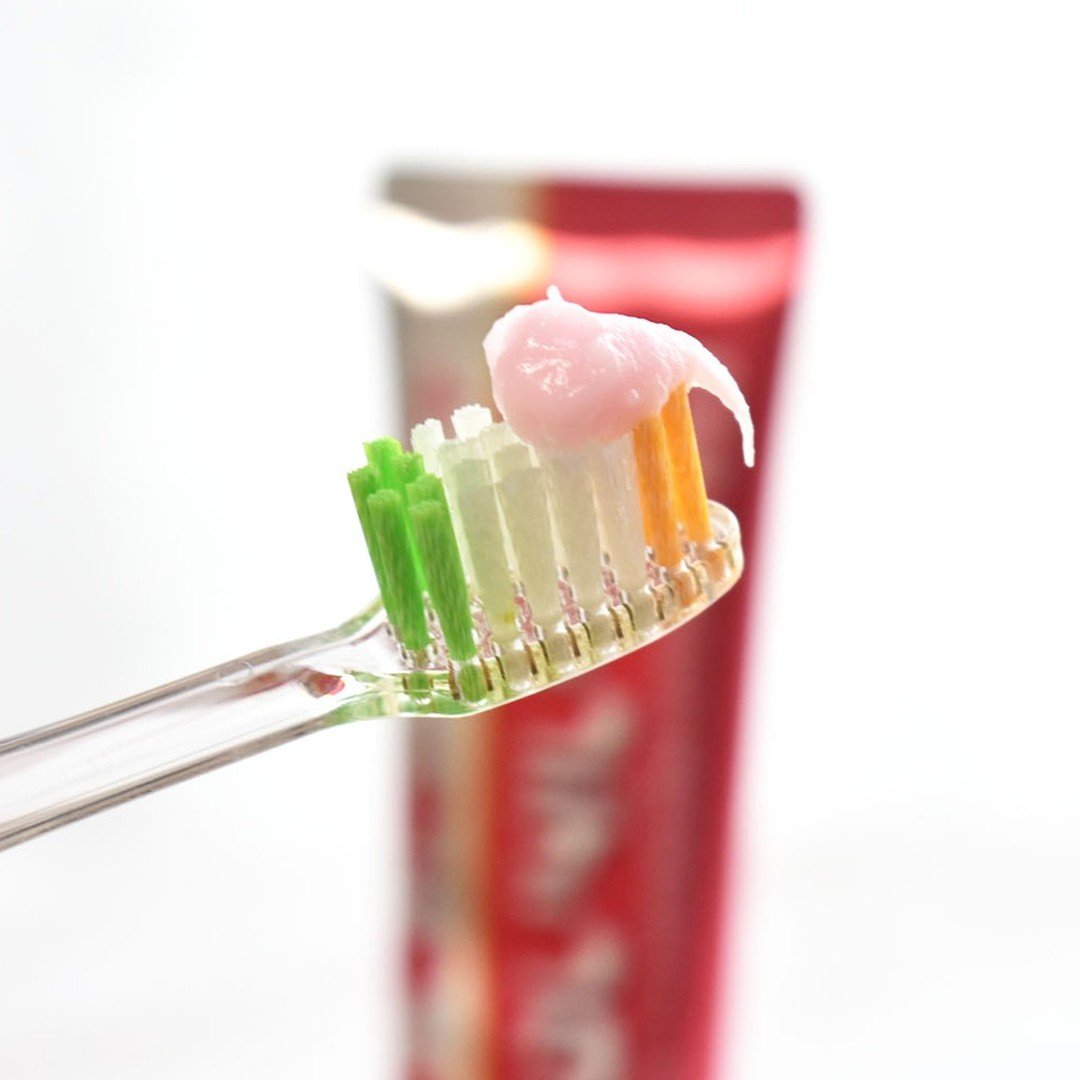 - <110g> 炭酸水素ナトリウム、濃グリセリン、精製水、塩化ナトリウム、ポリエチレングリコール400、ゼオライト、ラウロイルサルコシン塩(LSS)、フッ化ナトリウム(フッ素)、ε-アミノカプロン酸、トコフェロール酢酸エステル(ビタミンE)、β-グリチルレチン酸、塩化セチルピリジニウム(CPC)、イソプロピルメチルフェノール(IPMP)、無水ケイ酸、含水ケイ酸、ポリオキシエチレン硬化ヒマシ油、ラウリル硫酸塩、ハッカ油、カルボキシメチルセルロースナトリウム、香料(ペパーミントタイプ)、パラベン、酸化チタン、グンジョウピンク、赤色3号、黄色203号