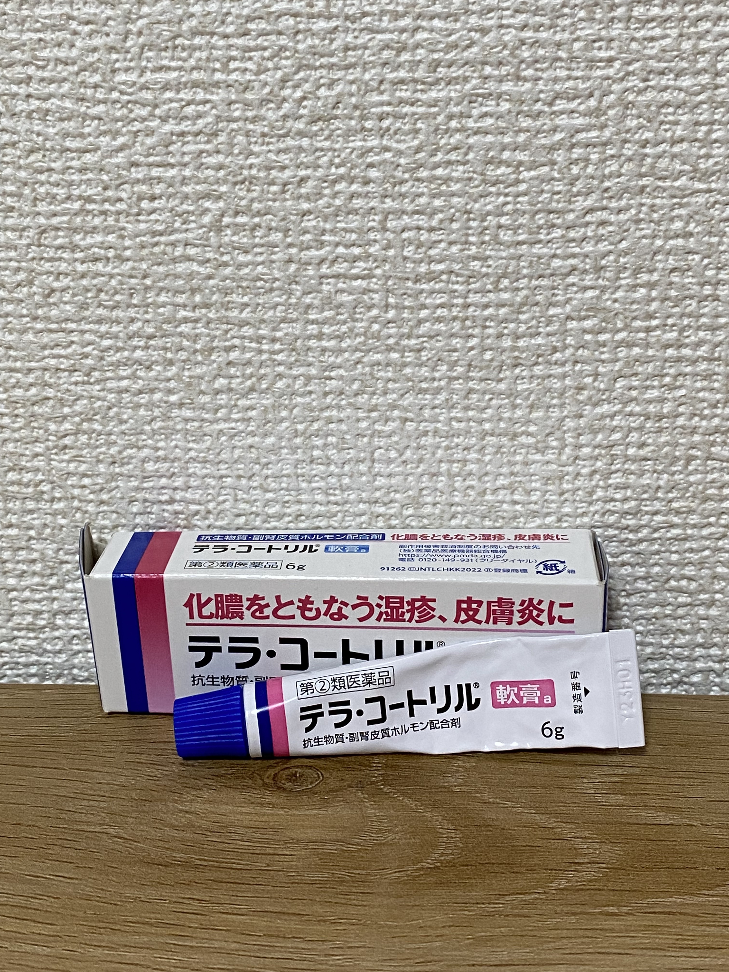 ニキビ赤み腫れてるなって思ったらとりあえずこれつけてその上から絆創膏貼ってる早く治れ〜ほっぺのニキビ!!水、ビタミン、意識して飲むことと睡眠時間をしっかりとること。#肌荒れ#ニキビ#テラコートリル#軟膏...