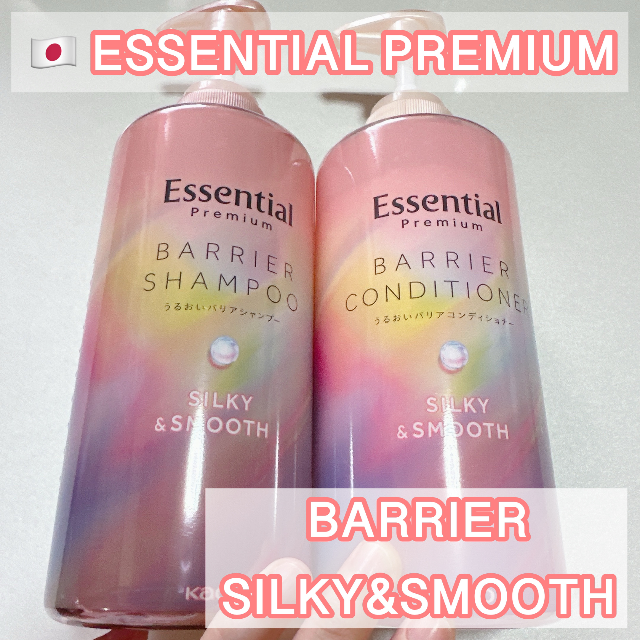 エッセンシャルプレミアムバリアシャンプー・コンディショナーシルキー&スムース〈説明〉・シャンプー・コンディショナー・450ml(両方とも)〈感想〉ホワイトピーチ&ムスクの香りは良い匂いで良かったです。シャンプーの洗浄力には私的には満足しました...