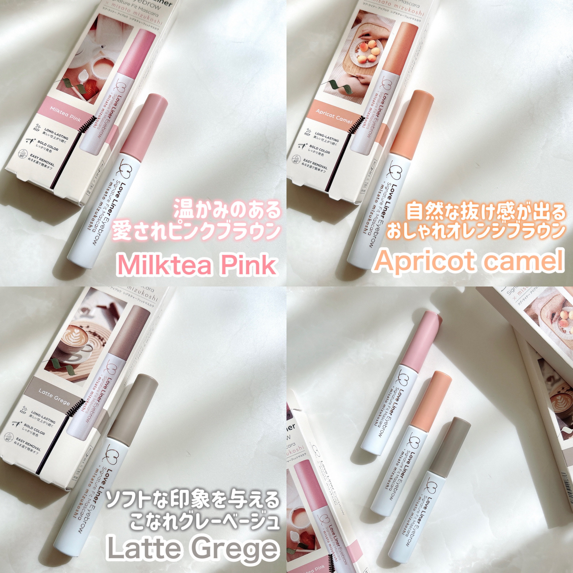 - 〈限定発売〉美容クリエイター水越みさとさん監修アイブロウマスカラ第2弾。 ・“眉の存在感を和らげる”ことをテーマに、春らしい絶妙なニュアンス感カラー。 ・地肌につきにくく塗りやすい角度つき極小ブラシ採用。 ・1本1本色づき自然になじむアイブロウマスカラ。 ミルクティピンク…温かみのある愛されピンクブラウン ラテグレージュ…ソフトな印象を与えるこなれグレーベージュ アプリコットキャメル…自然な抜け感が出るおしゃれオレンジブラウン