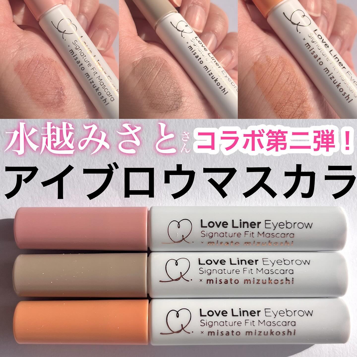 水越みさと監修アイブロウマスカラ第2弾ꉂꉂ📣 第1弾の時からずっと使っててストックもあるけど今回の3種類も可愛すぎた🥰 眉の存在感を和らげるやや明るめのカラーで、どんなメイクにも馴染みやすく使いやすいなと思います😊💭 みさとさん監修カラーなんて間違いなし‼️ 定番になってほしいな〜💭