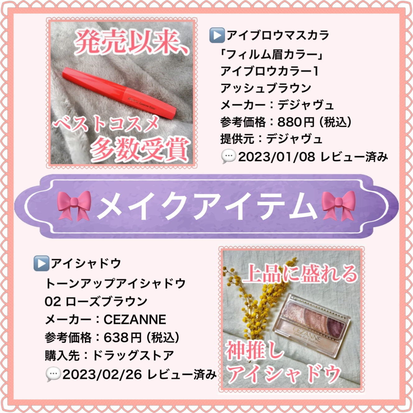 〻 WAKEMAKE ソフトブラーリング アイパレット 13 ブルーコアブラーリング 〻 FlowerKnows スワンバレエシリーズ アイシャドウパレット 02 ブラックスワン 〻 ヒロインメイク ラッシュリフトマスカラ 01 ゼリーブラック (提供品) 〻 Anua ドクダミ77%スージングトナー (提供品) 〻 Laka ドリームビームハイライター 02 ピンクビーム, 03 ウォータービーム 〻 lilybyred ブラッディーライアー コーティングティント 07 Daring Cherry, 10 Strong Cherry 〻 ロレアル パリ エクストラオーディナリー オイル ヘアマスク (提供品) 〻 エッセンシャル ザビューティ 髪のキメ美容素髪を守る バリアシャンプー/コンディショナー (提供品)