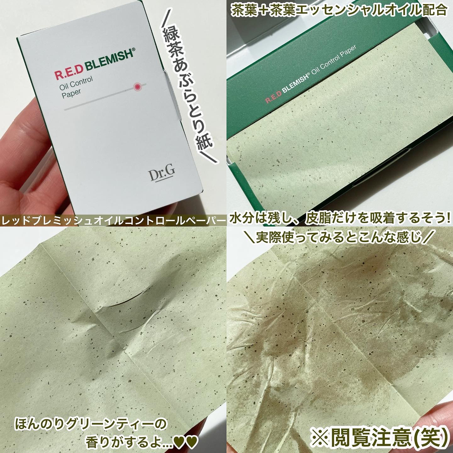 緑茶を使ったあぶらとり紙、レッドブレミッシュオイルコントロールペーパーとニキビパッチのエイクリアスポットキュアパッチ! カテキンが皮脂をコントロールし肌を守ってくれる! 薄手で目立ちにくいから日中でも使いやすい!これひとつ貼っておくだけで鎮静から色素沈着のケアまでできるのは嬉しい!