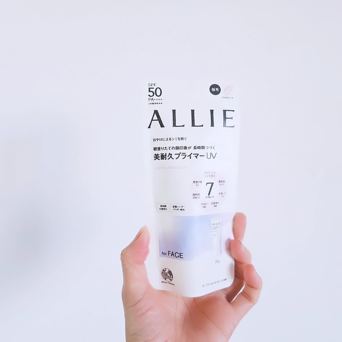 - 顔用日やけ止めジェル UV下地が7つの機能でアプローチ 朝塗りたての顔印象つづく。美耐久プライマーUV ●7アプローチ設計 【日やけによるシミを防ぐ】強力UVをカットし日やけによるシミ・ソバカスを防ぐ。 SPF50・PA++++・UV耐水性★★ 【素肌美仕上げ】素肌トーンアップ設計でパールが輝きどこから見てもツヤめく仕上がりへ導く 【化粧ノリUP】UV塗膜の上にぴったりファンデーションが密着し化粧ノリがUP 【化粧持ち持続】皮脂ハンターパウダーが過剰な皮脂を吸着し、テカリ・べたつきを防ぐ 【うるおい持続】水相成分約65%の密着ジェル。うるおい持続ヴェールを形成し、うるおった肌が長時間つづく 【透明感UP】微細なパールでメイクの上からでも透明感を足せる 【厚塗り感なし】リタッチ設計でメイクの上からヨレずにキレイにUVを塗り直せる ●マスク・タオル等につきにくい ●ニキビになりにくい処方(ノンコメドジェニックテスト済*2) *2 コメド(ニキビのもと)のできにくいことを確認するテストです。すべての方にコメド(ニキビのもと)ができないというわけではありません。 ●普段のメイククレンジングで落とせる ●美容液成分(保湿)配合 ヒアルロン酸Na ●汗・水・摩擦に強い 【フリクションプルーフ】日常のこすれ・摩擦に強く落ちにくい機能 【スーパーウォータープルーフ】水に抜群に強く落ちにくい機能 【スウェットプルーフ】汗に強く落ちにくい機能 ●ビーチフレンドリー処方 環境に配慮した設計(水環境リスク評価済み) ●環境に配慮 外装・容器には環境に配慮した素材を使用しています。FSC認証 ●8時間化粧持ちデータ取得済み(当社調べ。効果には個人差があります)